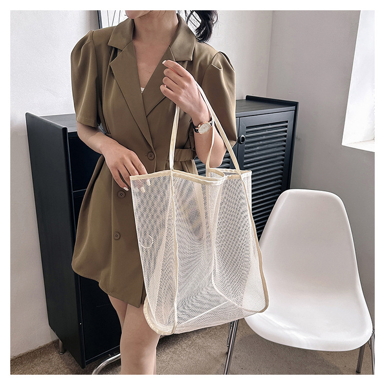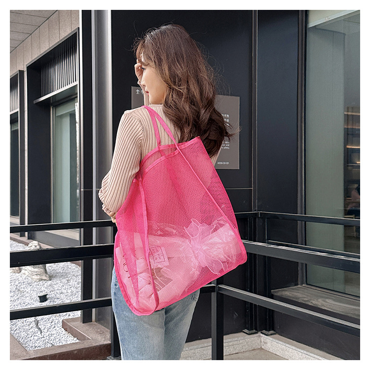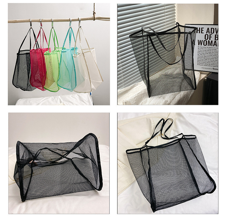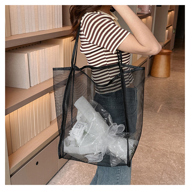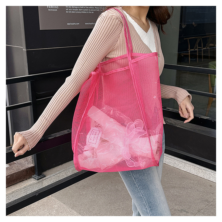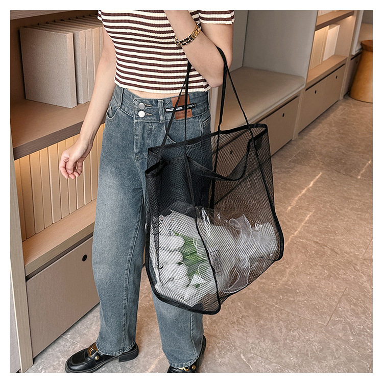 Tas selempang jaring transparan, tas bahu jaring transparan gaya ins, tas belanja pribadi ringan modis, tas perjalanan besar portabel musim panas