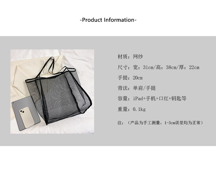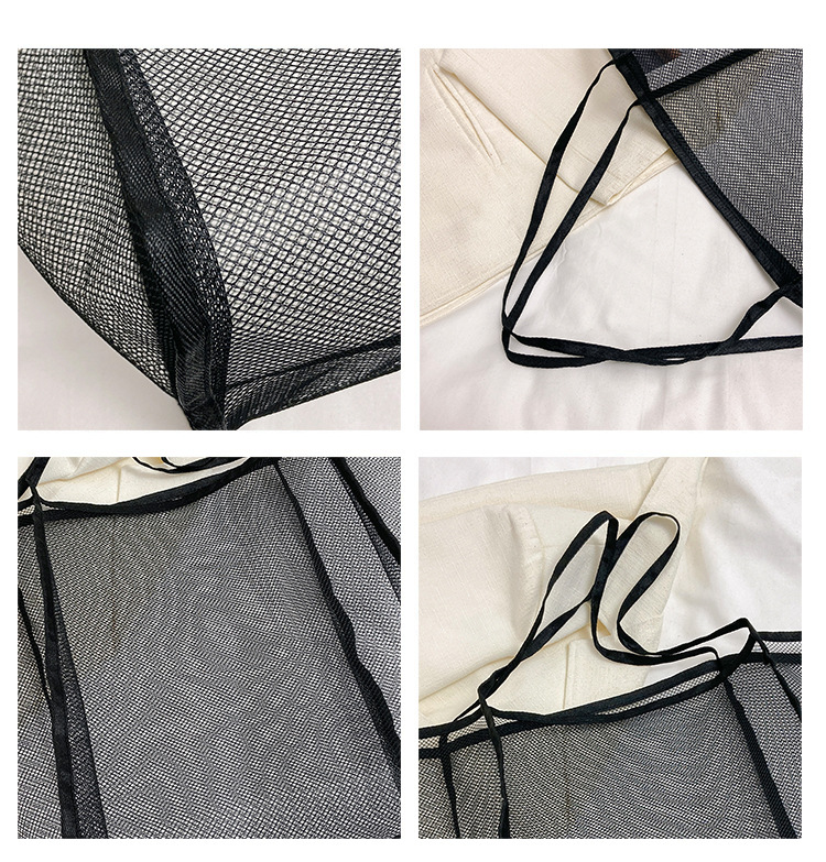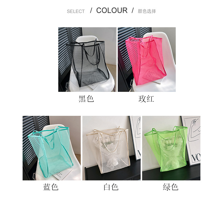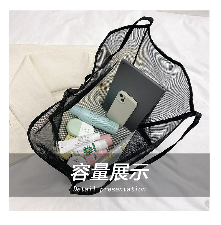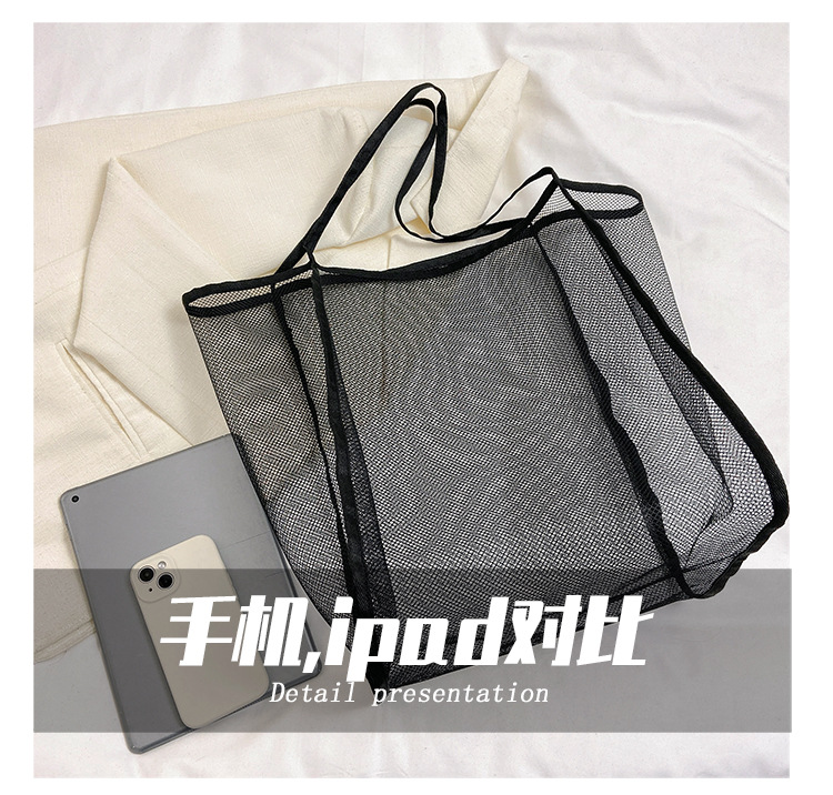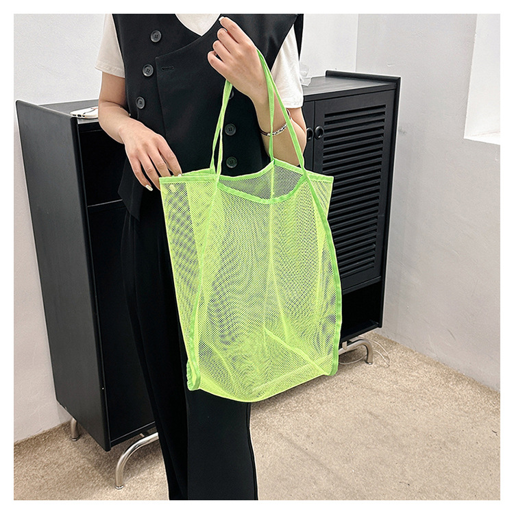 Tas selempang jaring transparan, tas bahu jaring transparan gaya ins, tas belanja pribadi ringan modis, tas perjalanan besar portabel musim panas