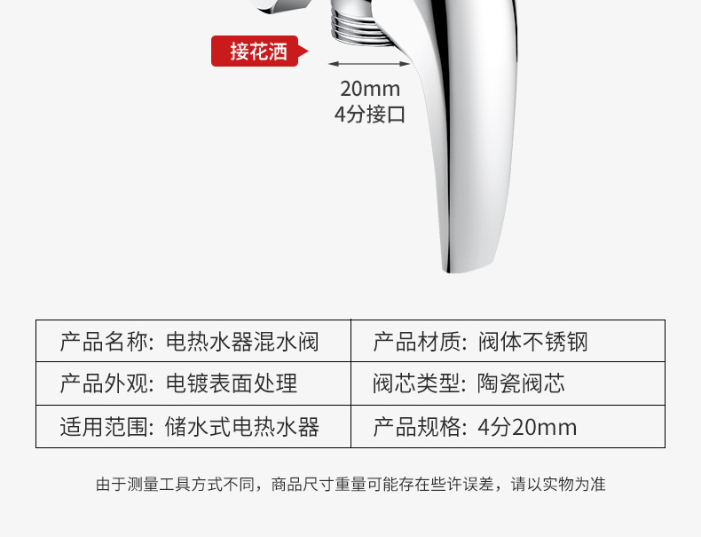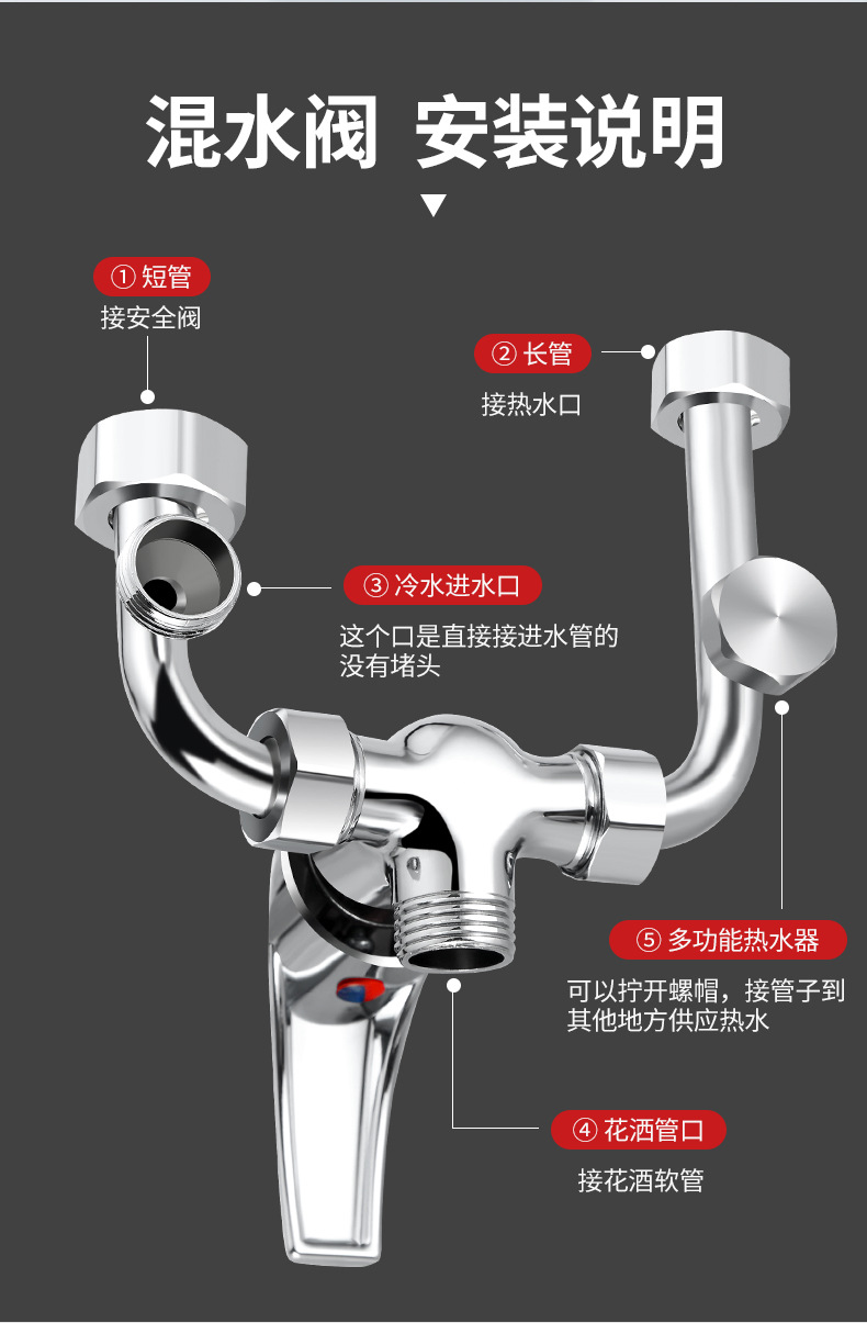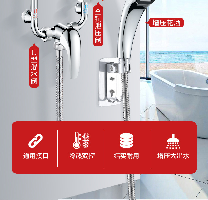 电热水器混水阀明装淋浴配件配花洒冷热开关混合u型阀水阀通用