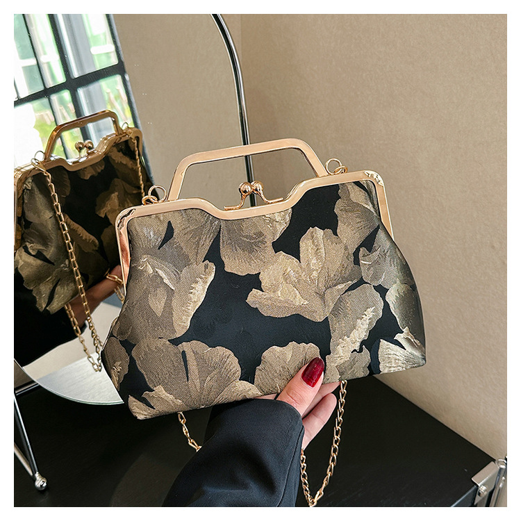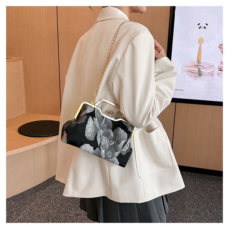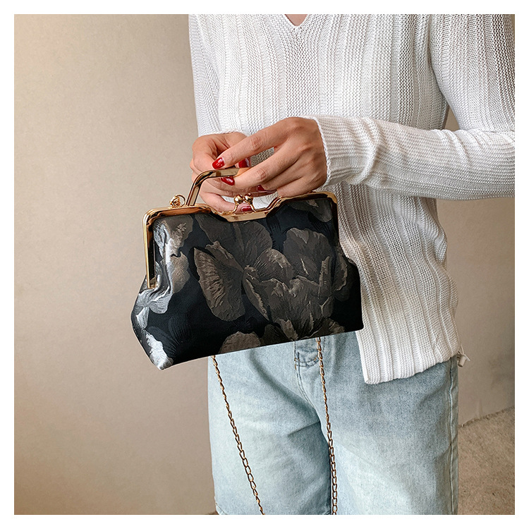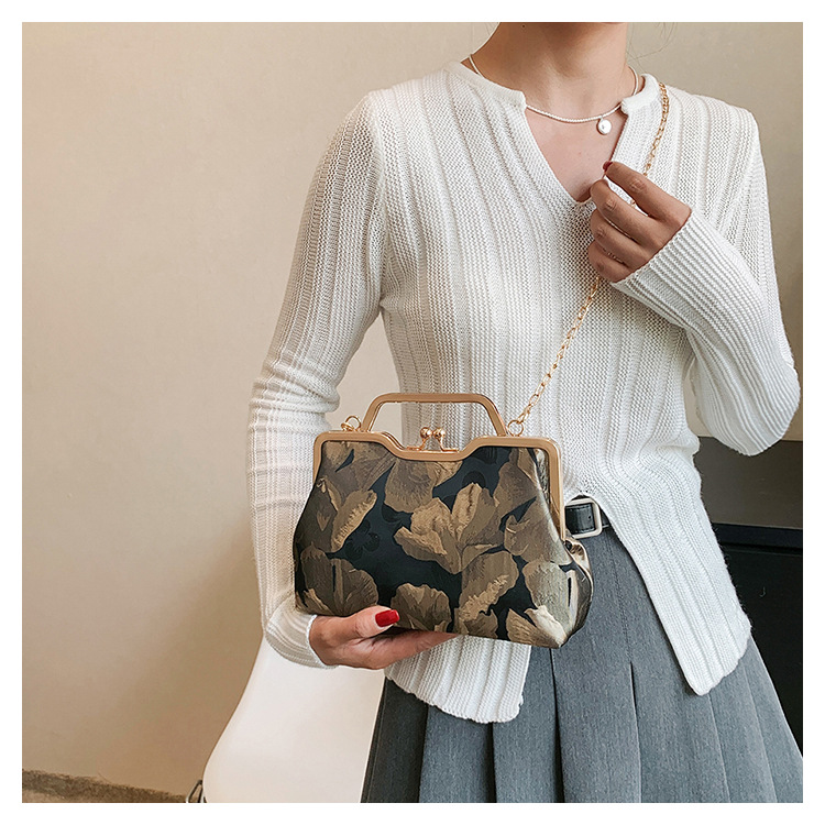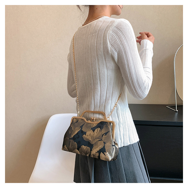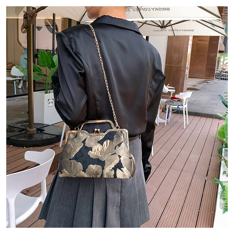 Tas selempang persegi kecil retro gaya Tiongkok, tas selempang portabel, tas kasual gaya etnik cheongsam, tas gesper berbentuk bibir