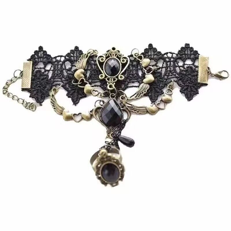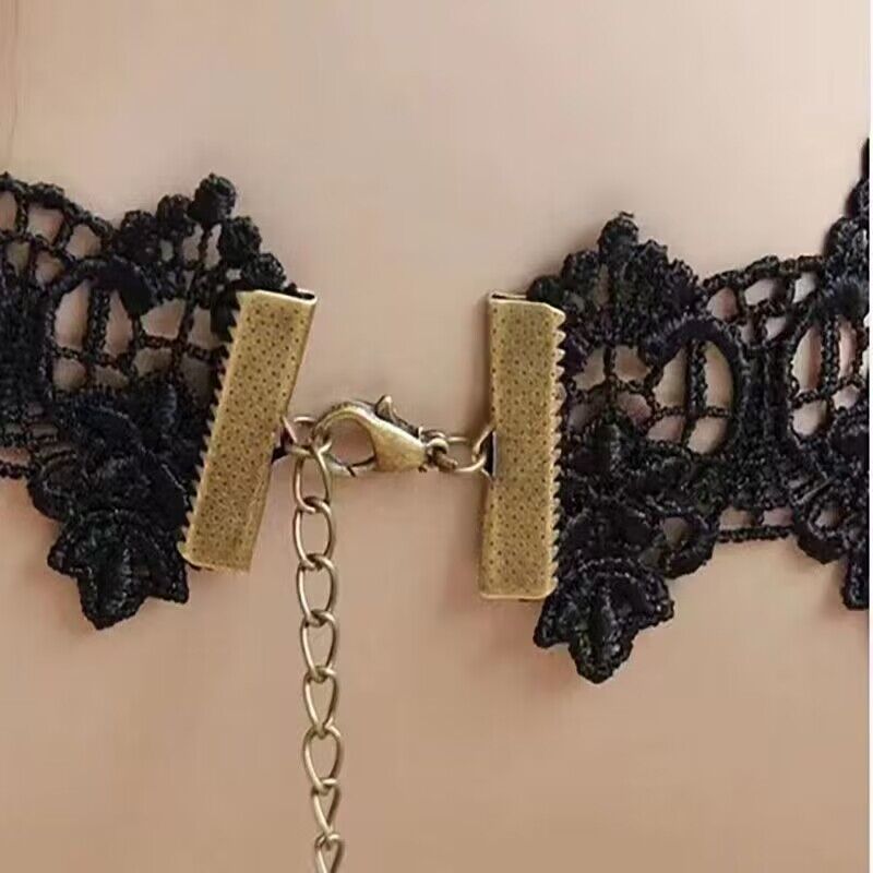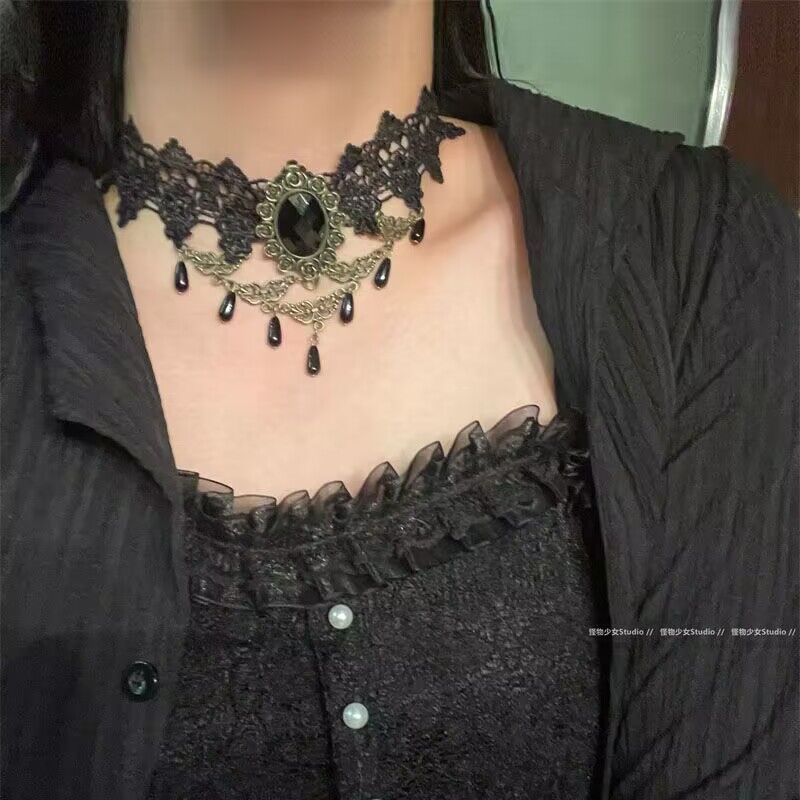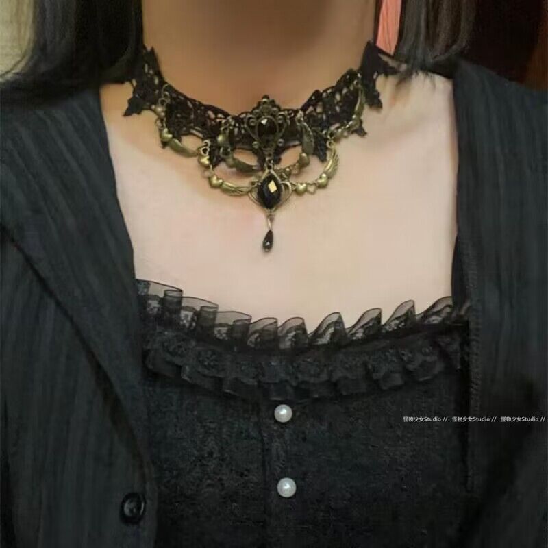 Aksesoris lolita kalung renda Gotik vintage cos rantai klavikula kalung dekoratif leher gelap untuk wanita