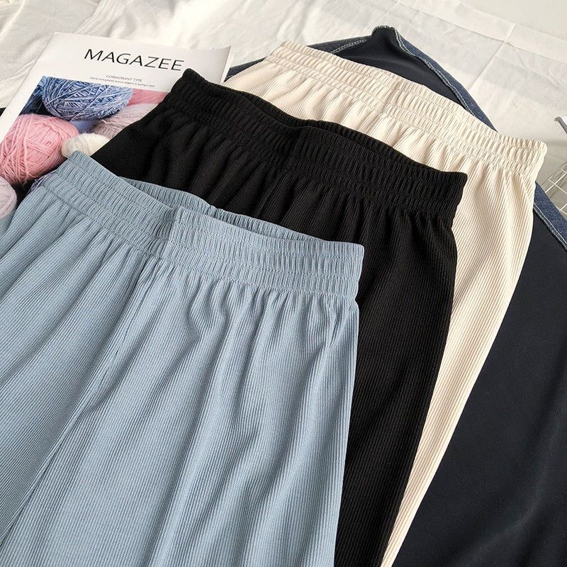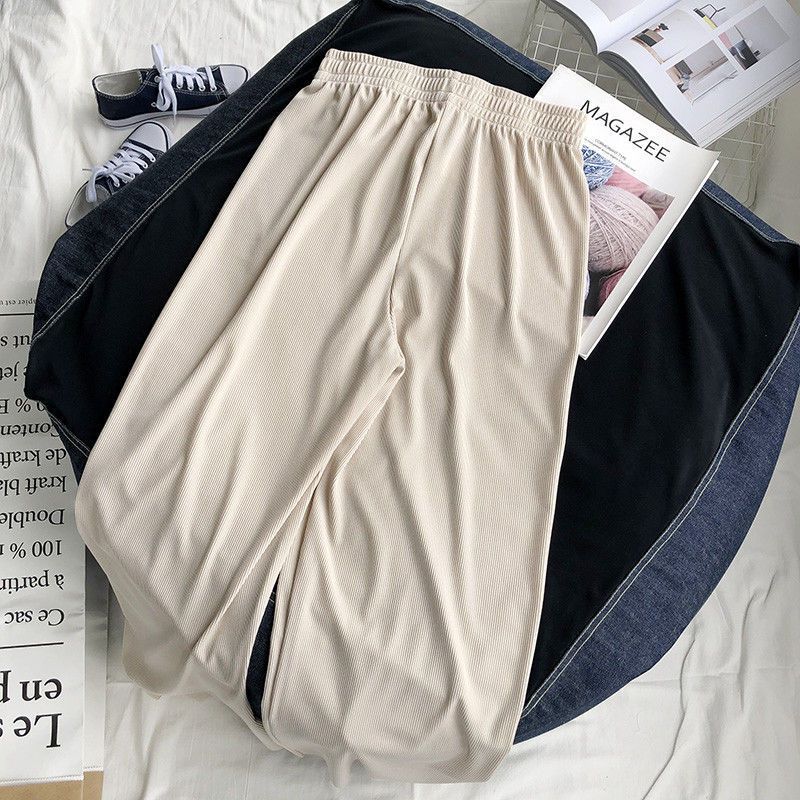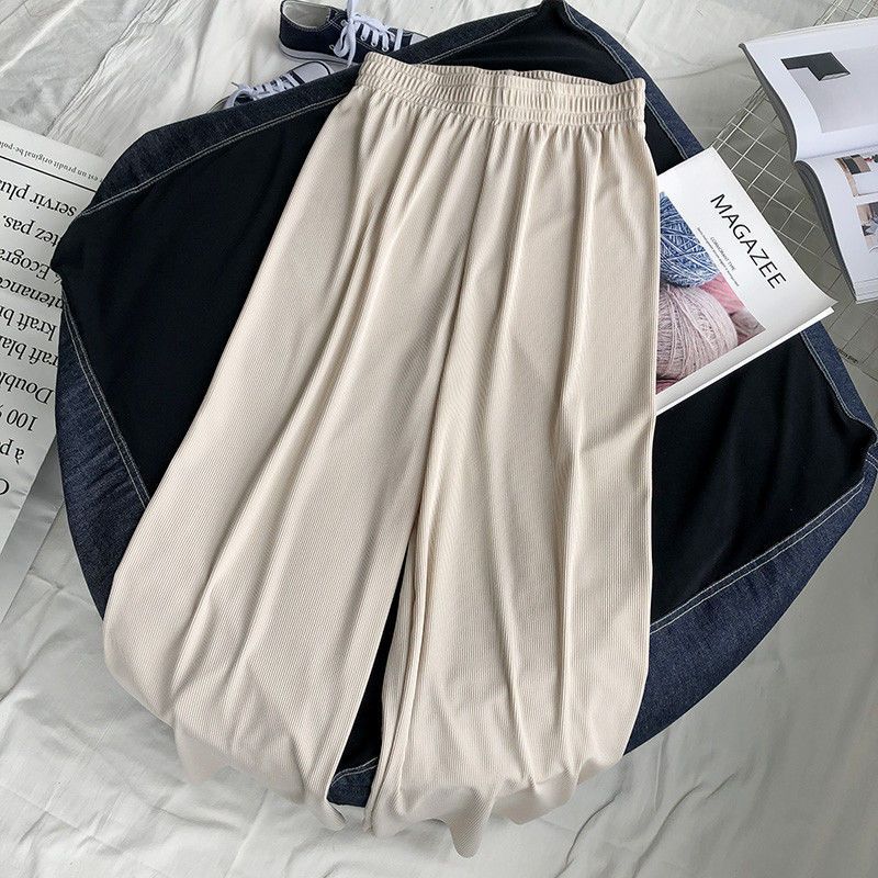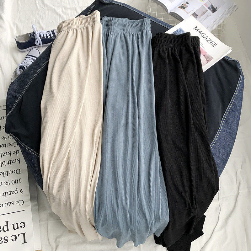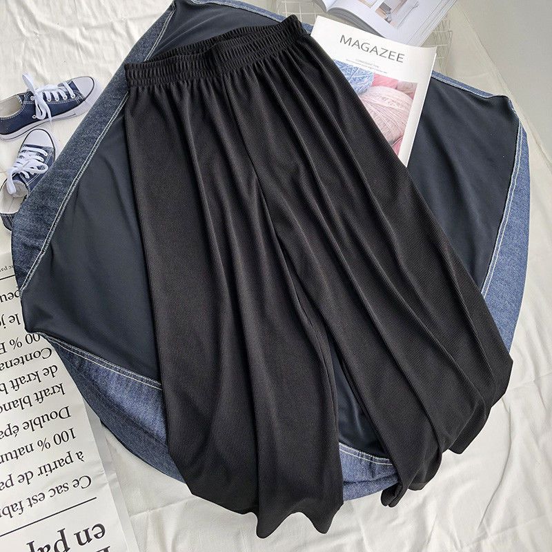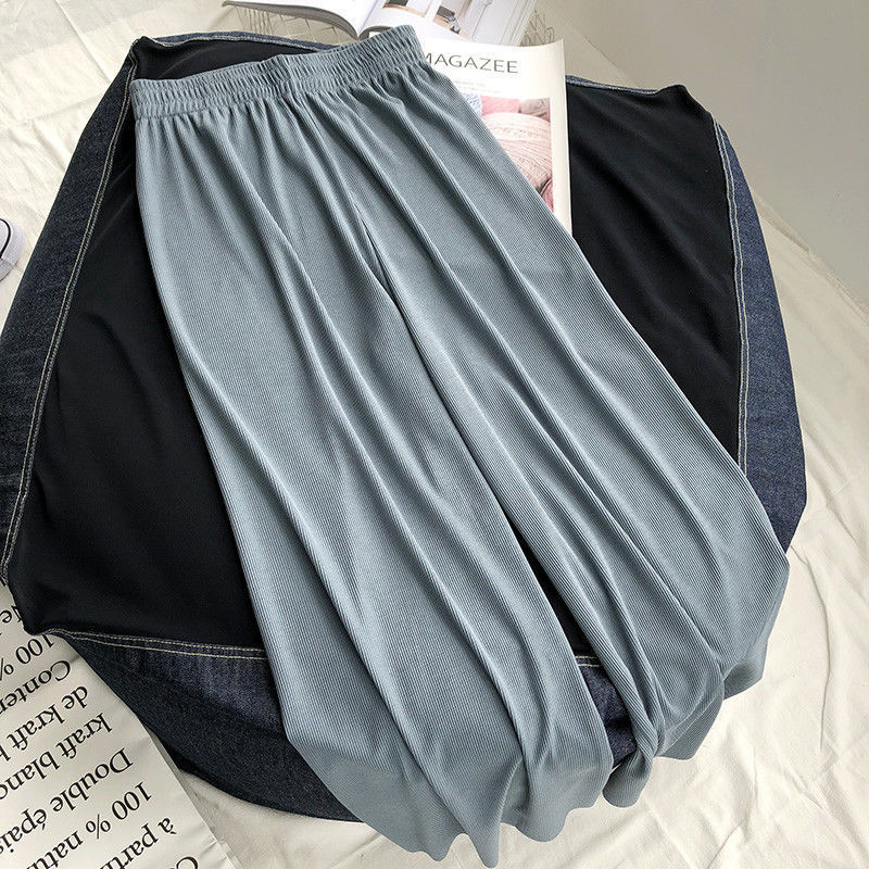 特大码300斤冰丝阔腿裤女夏季胖MM宽松高腰休闲九分裤高腰直筒裤