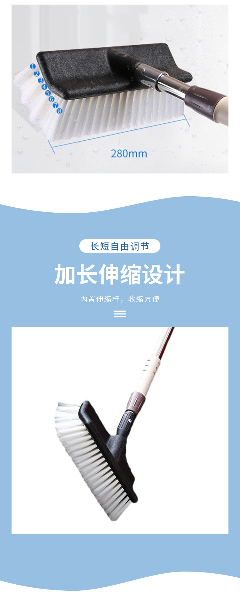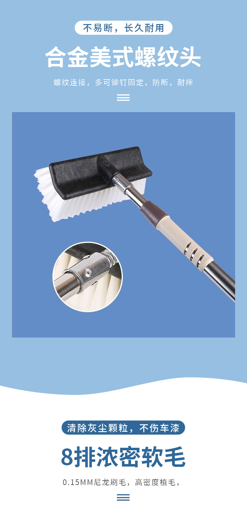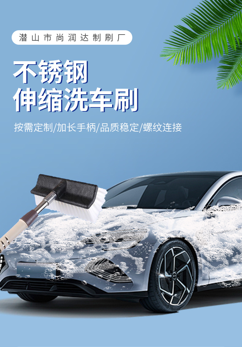 Pel cuci mobil batang paduan aluminium rumah tangga sikat pembersih baja tahan karat yang dapat ditarik bulu lembut tidak melukai produsen alat cuci mobil mobil