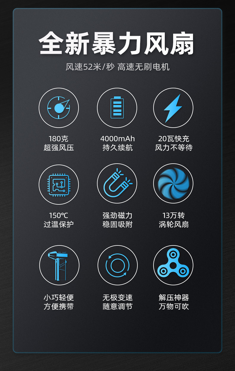 跨境新款暴力涡轮风扇高速飓风迷你便携风扇户外手持暴力吹风机