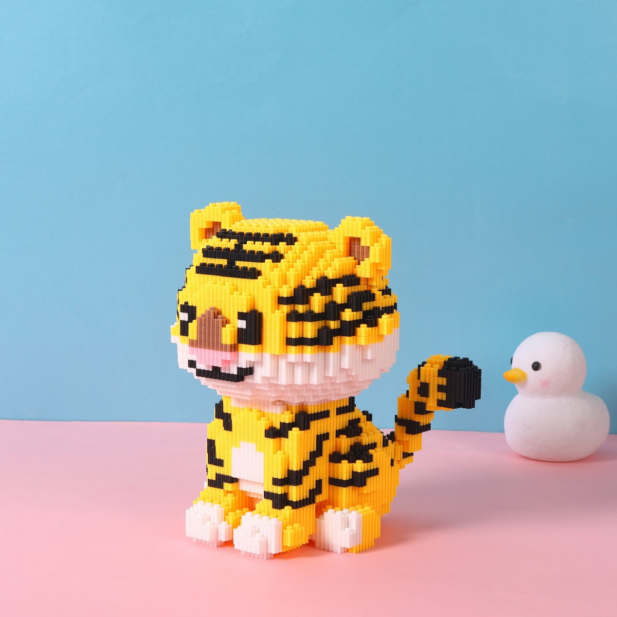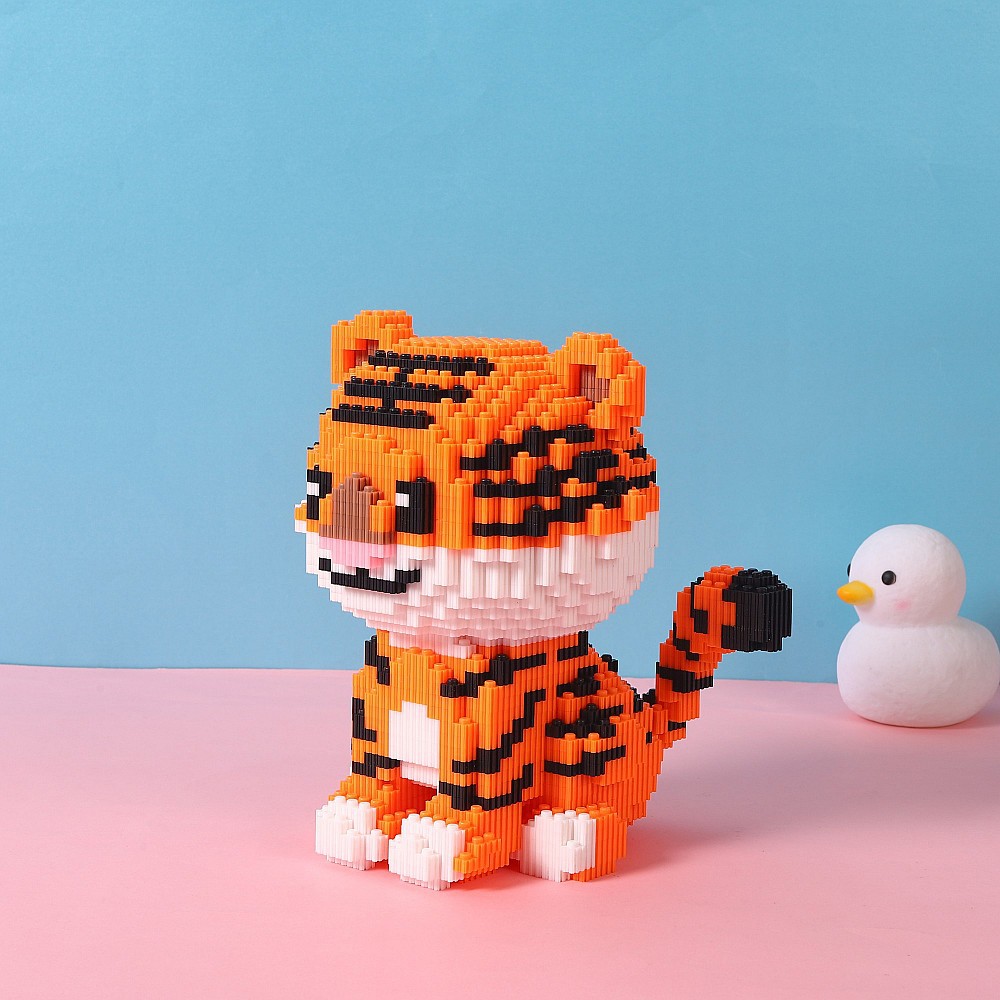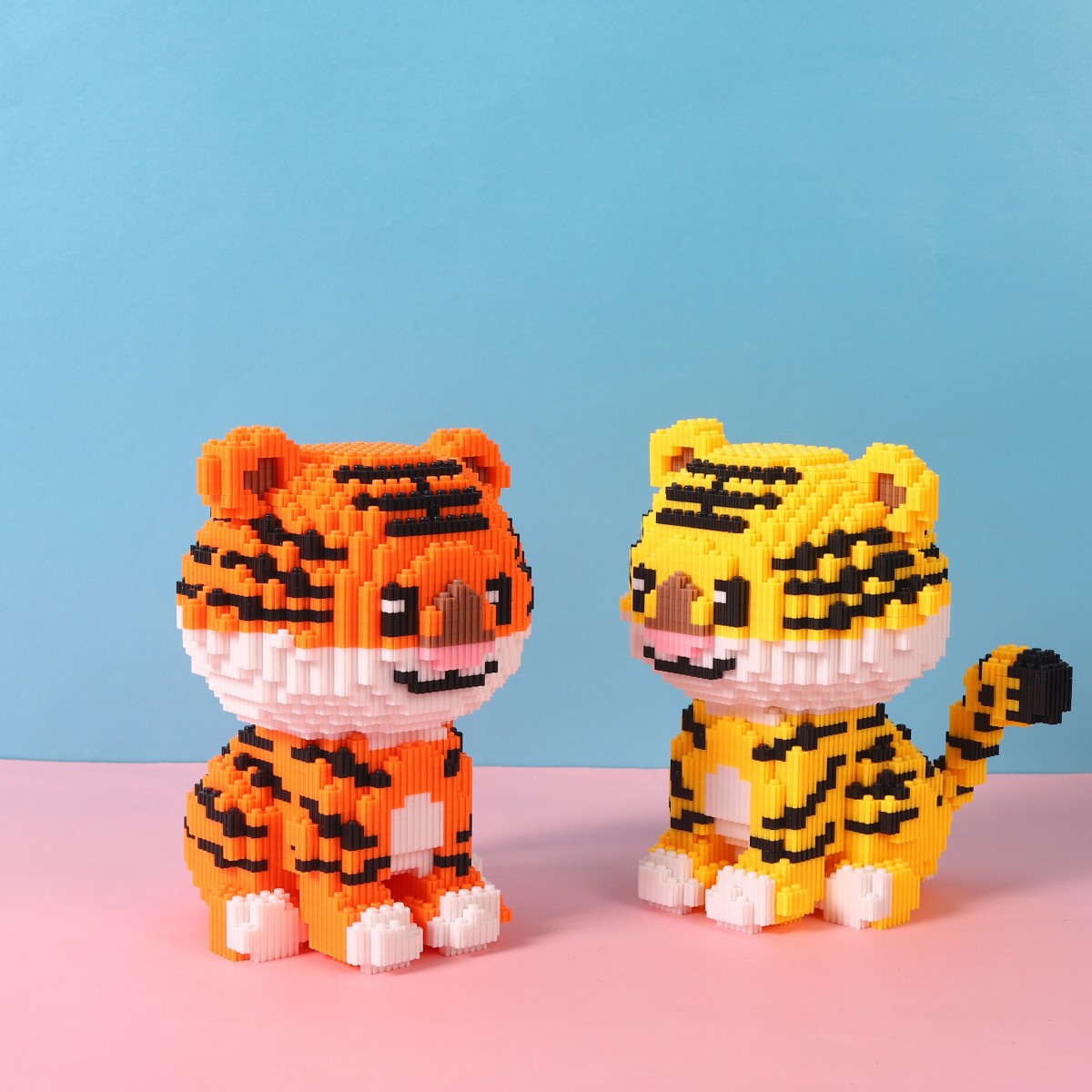 Ornamen perakitan hadiah Tahun Baru anak laki-laki dan perempuan blok bangunan puzzle model harimau lucu kompatibel dengan seri