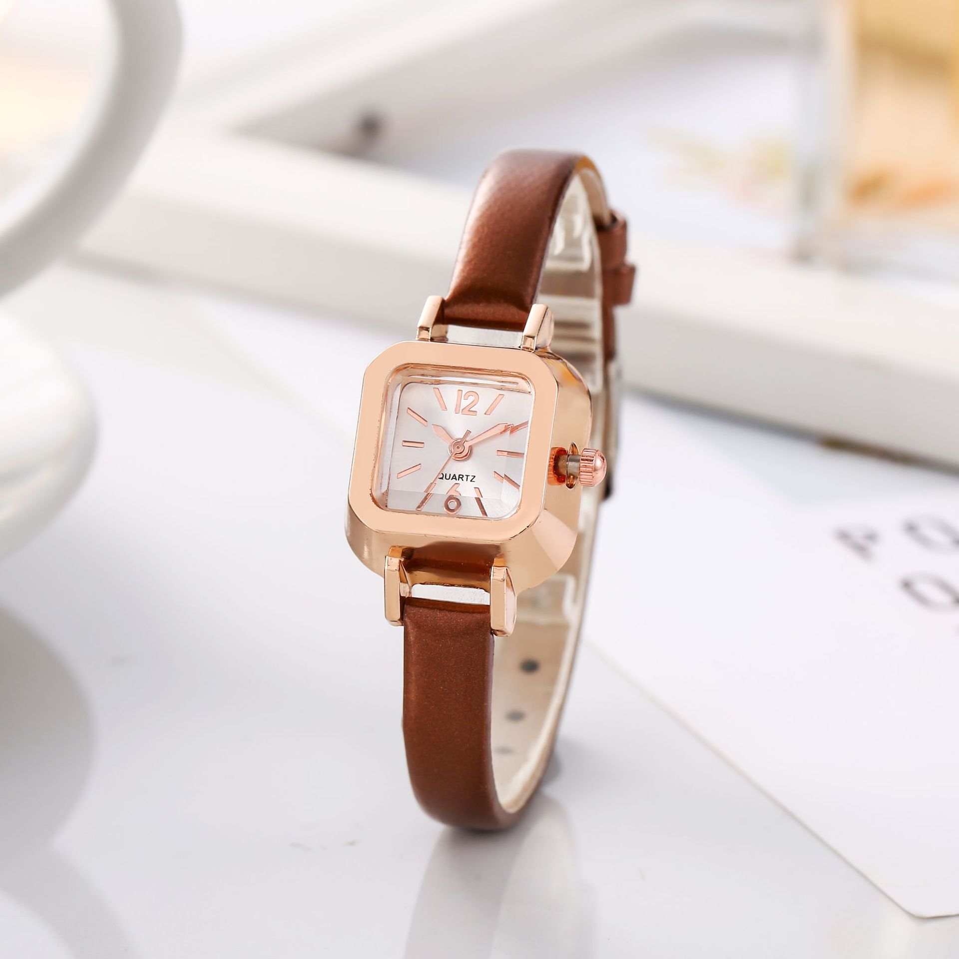 Jam tangan tali tipis dial kecil sastra gaya preppy gaya wanita pelajar kubus gula kecil gaya ins sederhana dan modis Korea