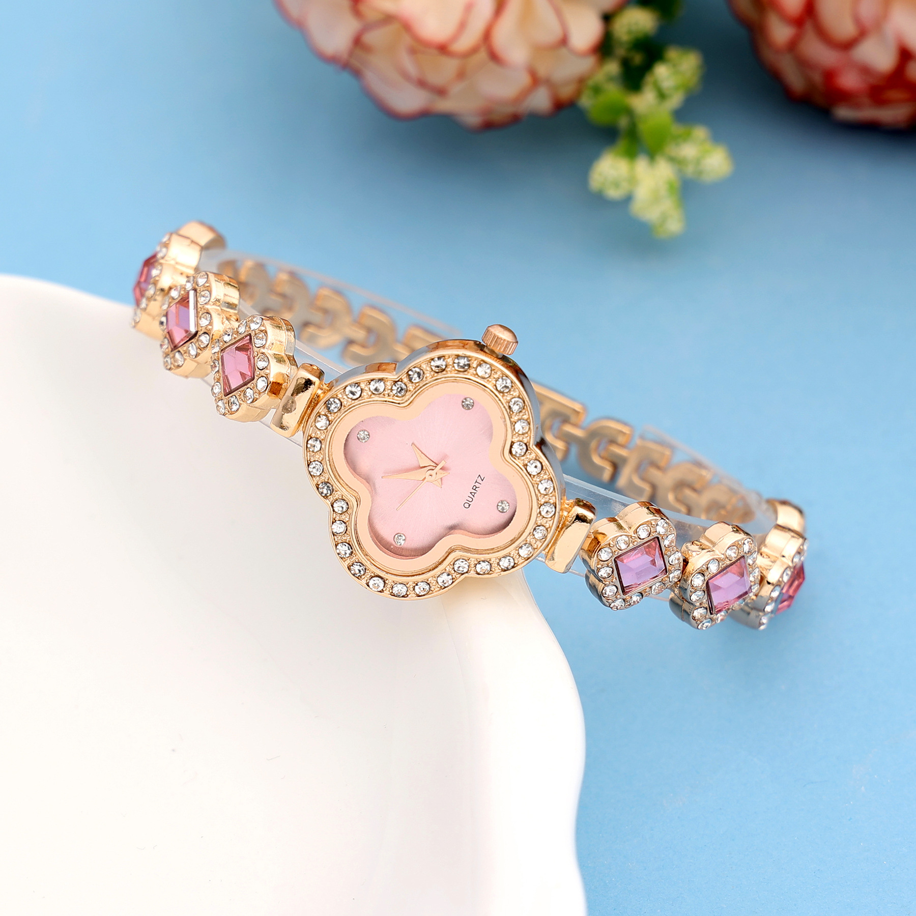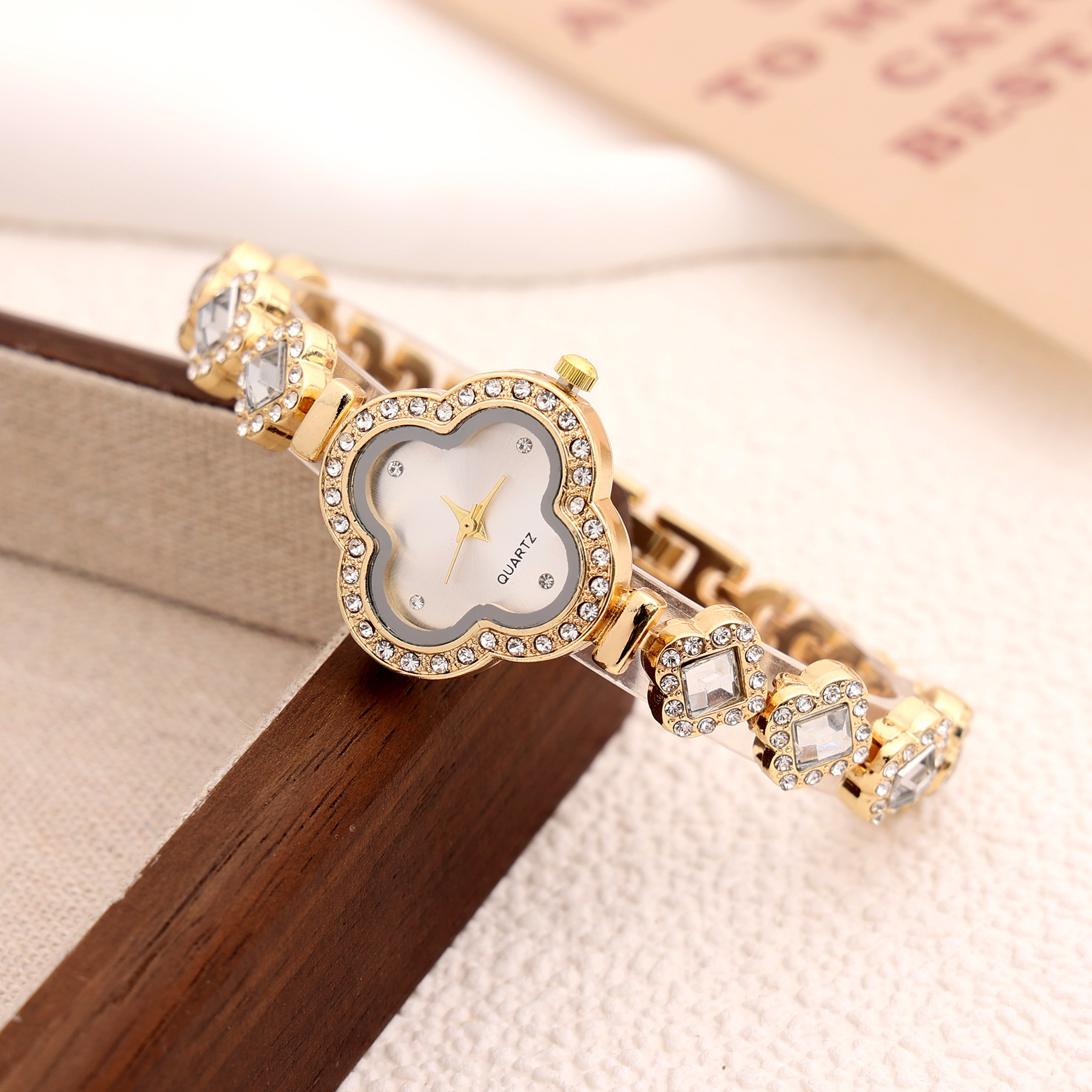 Jam tangan kuarsa wanita baru 2024 dengan berlian buatan kecil dial semanggi gelang ramping pabrik grosir perdagangan luar negeri
