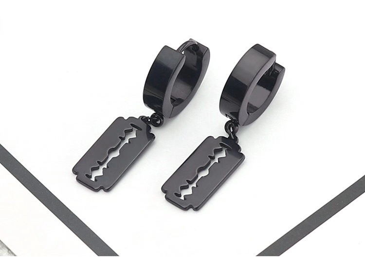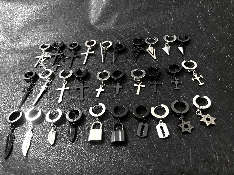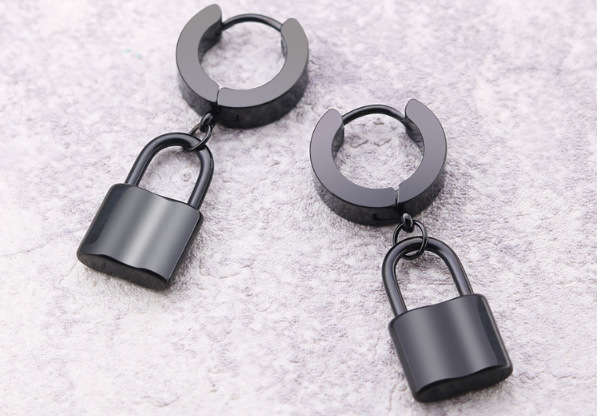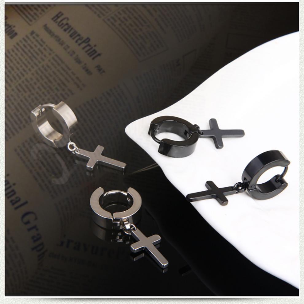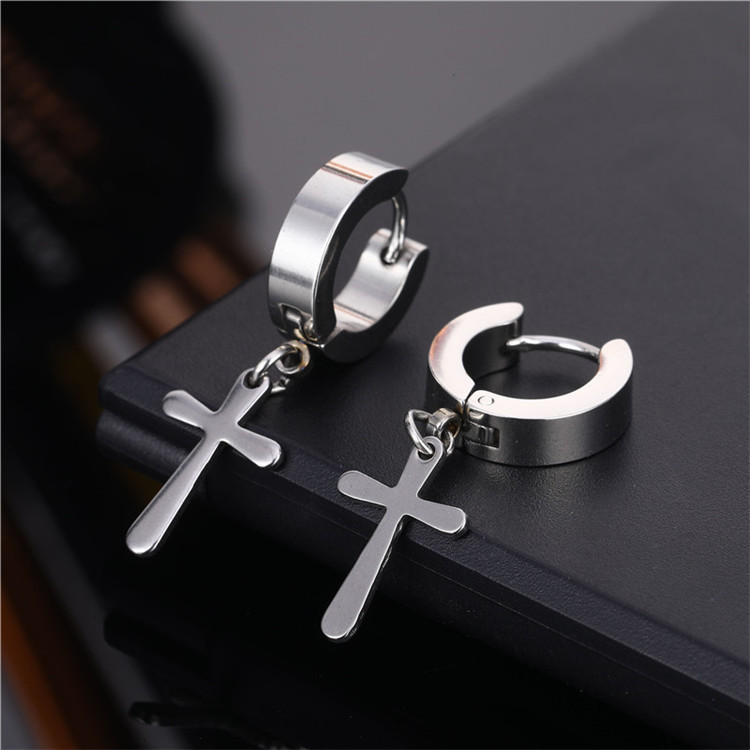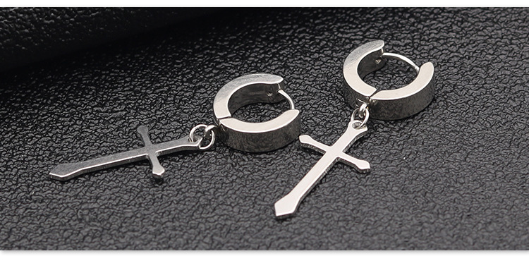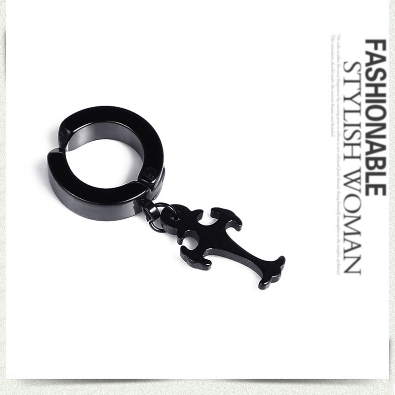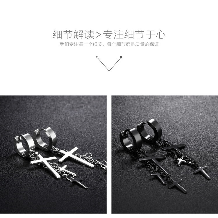 朋克黑色十字不锈钢耳环女式男士时尚复古链坠嘻哈首饰耳环批发