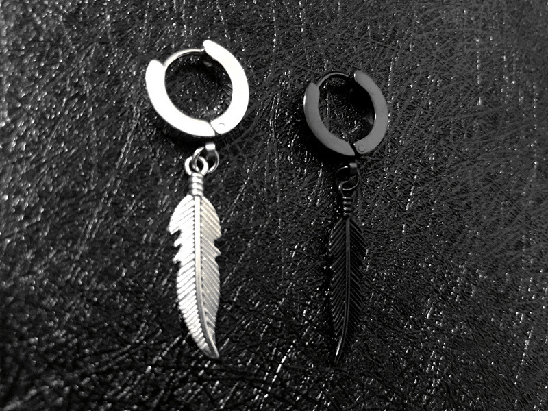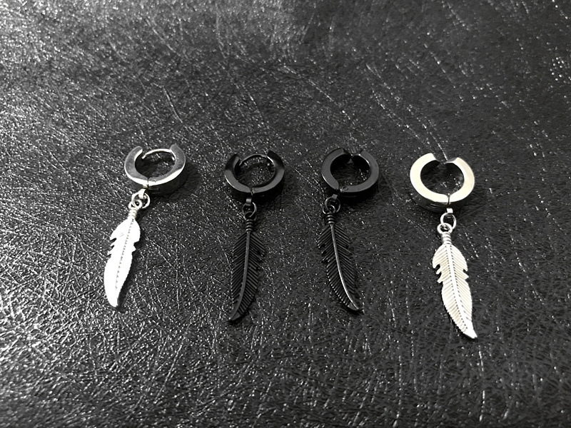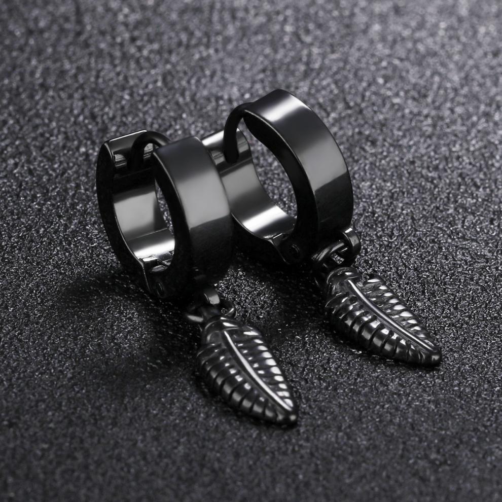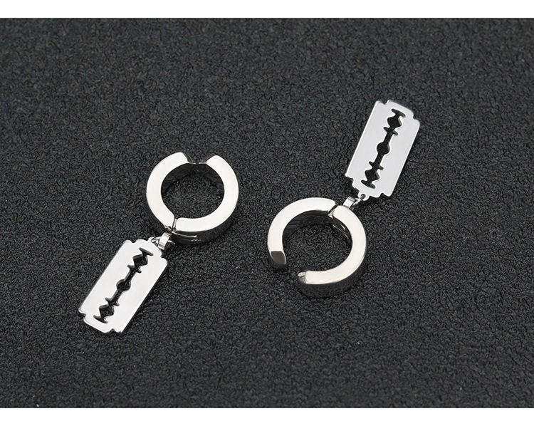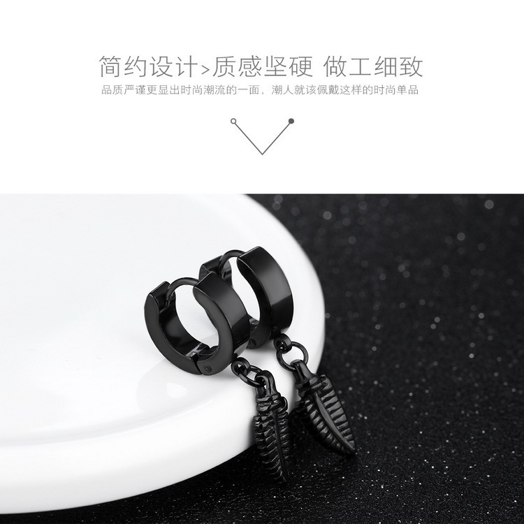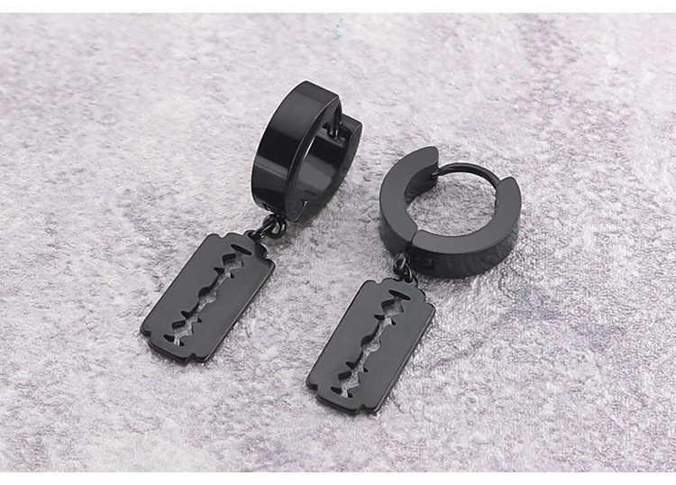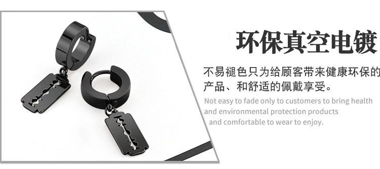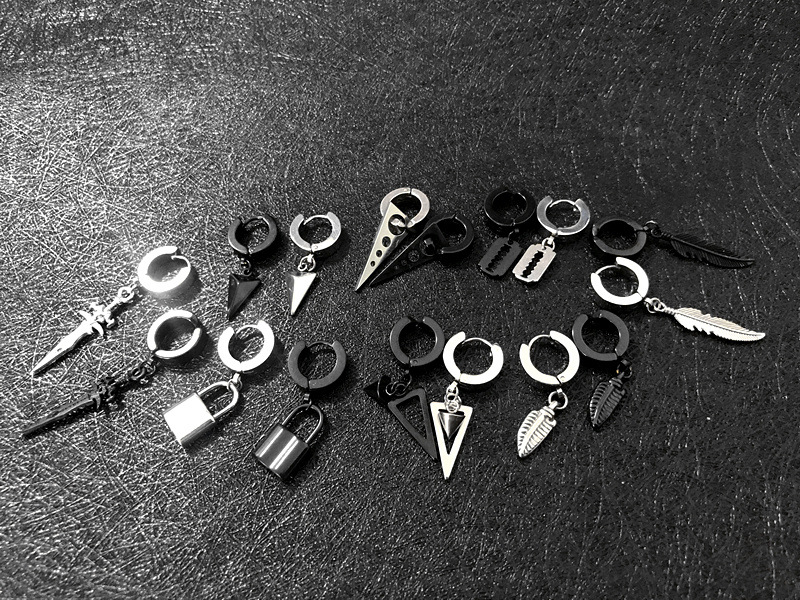 朋克黑色十字不锈钢耳环女式男士时尚复古链坠嘻哈首饰耳环批发