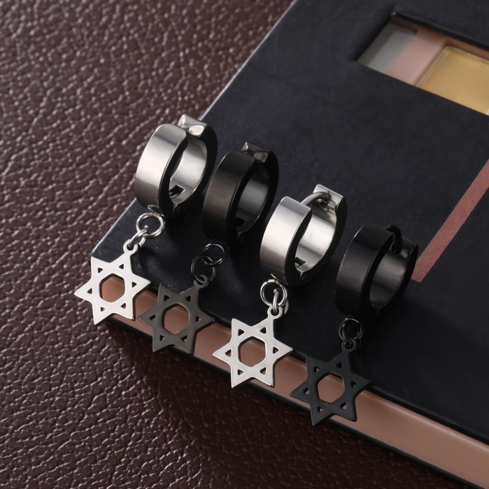 韩版时尚耳环无耳洞耳夹 吊坠复古无洞耳扣 新款六芒星不锈钢耳钉