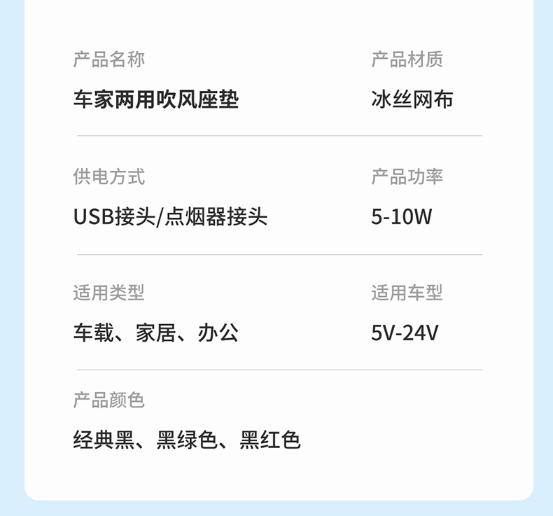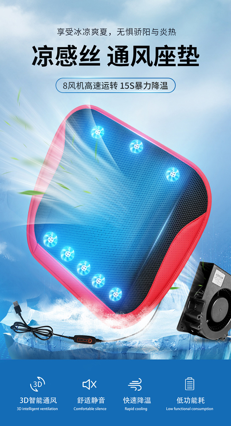 Bantal mobil ventilasi musim panas bantal keren usb sarung jok mobil blowing mobil SUV truk 12V24V