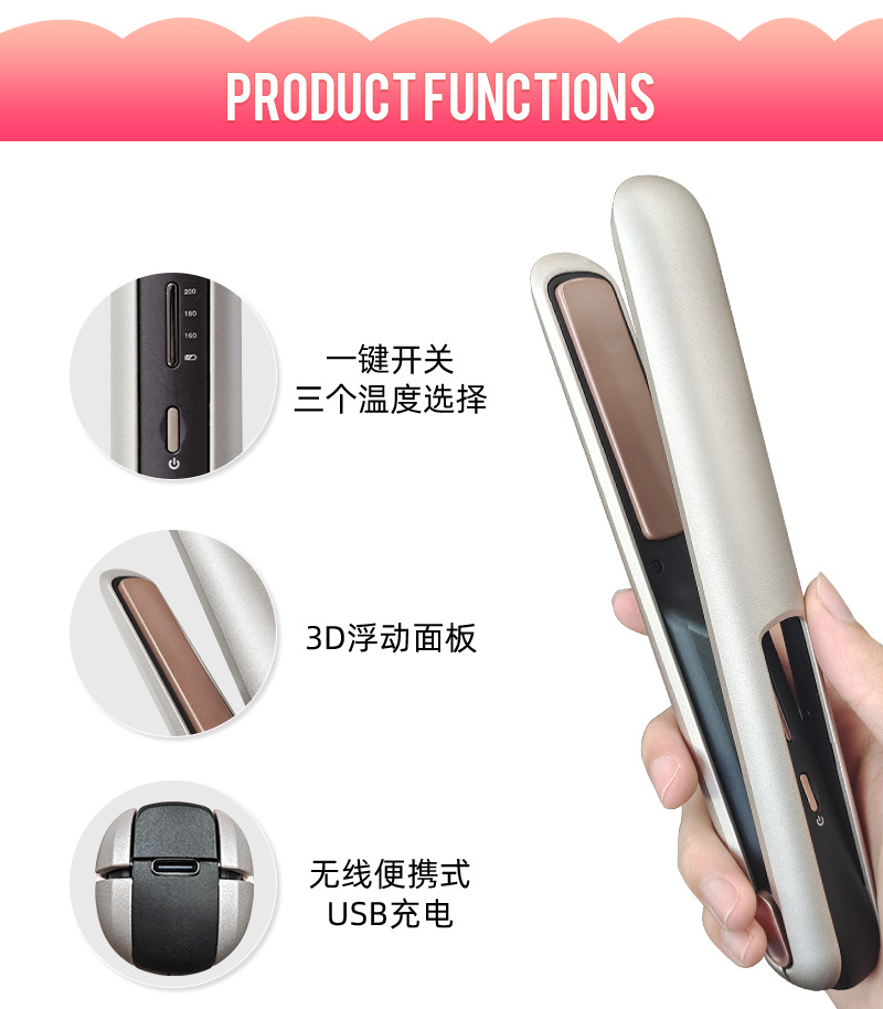 跨境新品usb充电无线直发器直卷两用卷发棒便携直板夹蓬松夹板