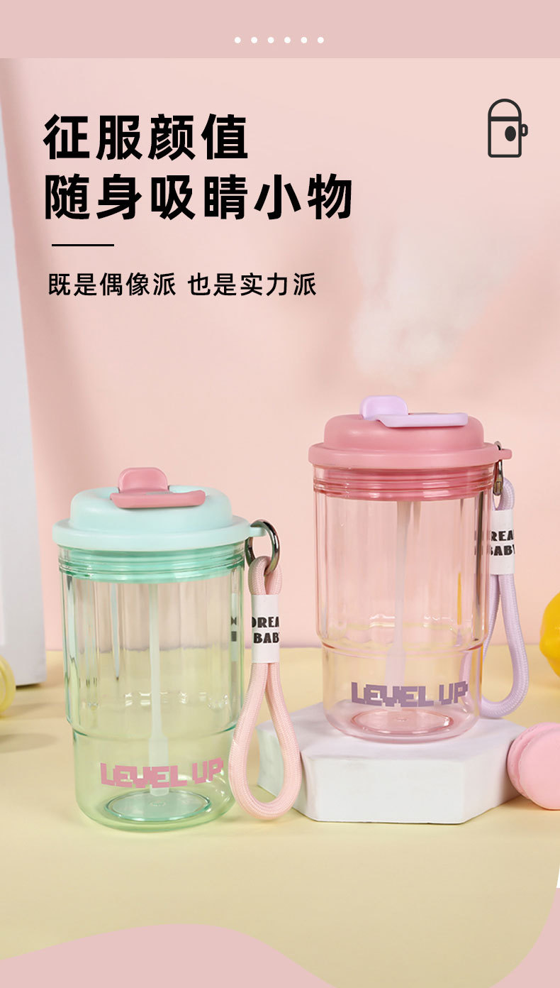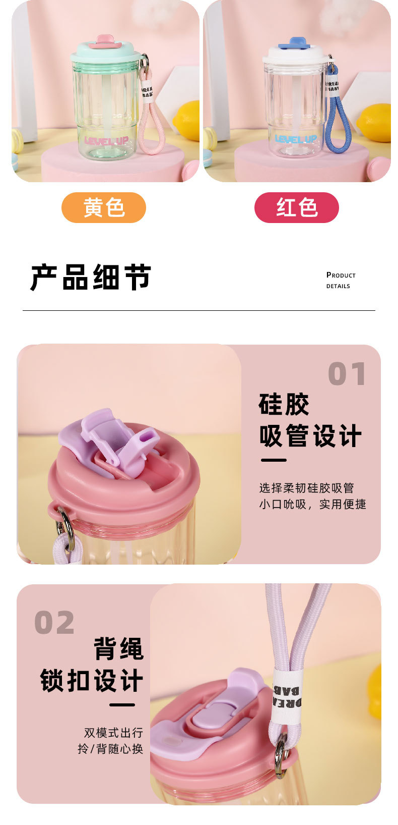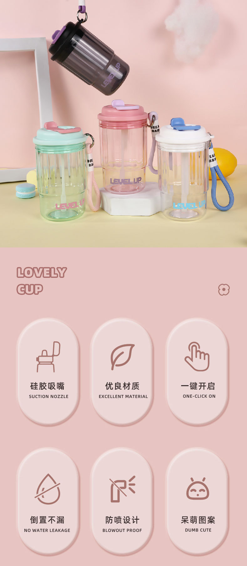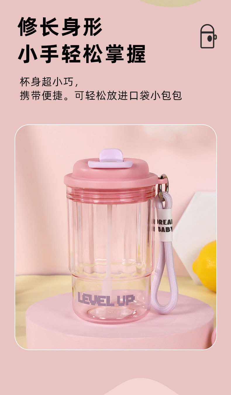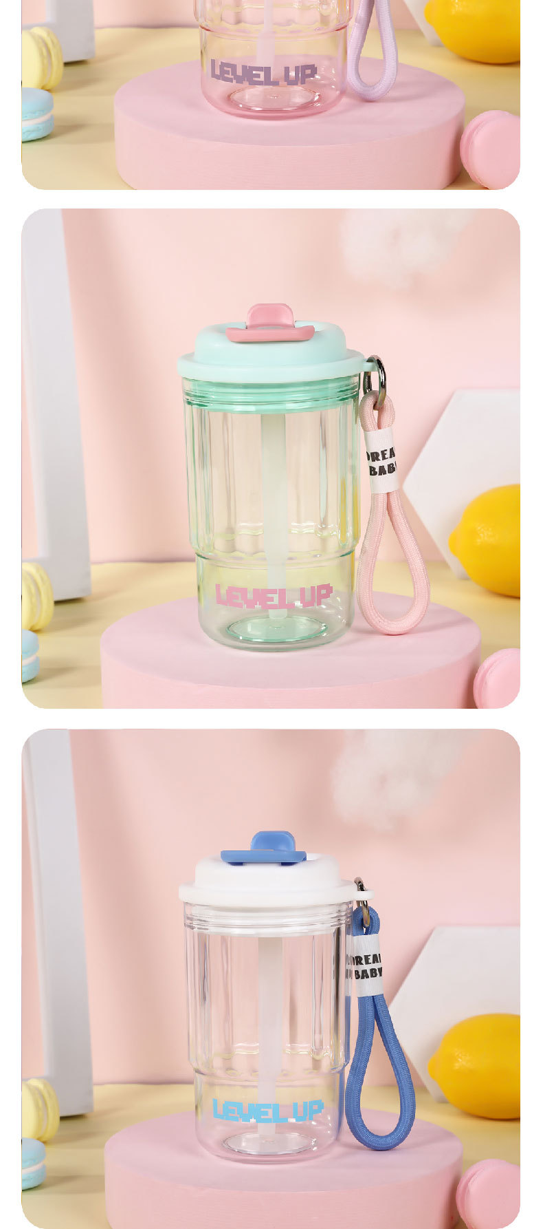 Gelas air, gelas kopi, gelas khusus anak perempuan dengan sedotan, botol minum plastik kapasitas besar untuk pelajar, botol air, botol cola, portabel.