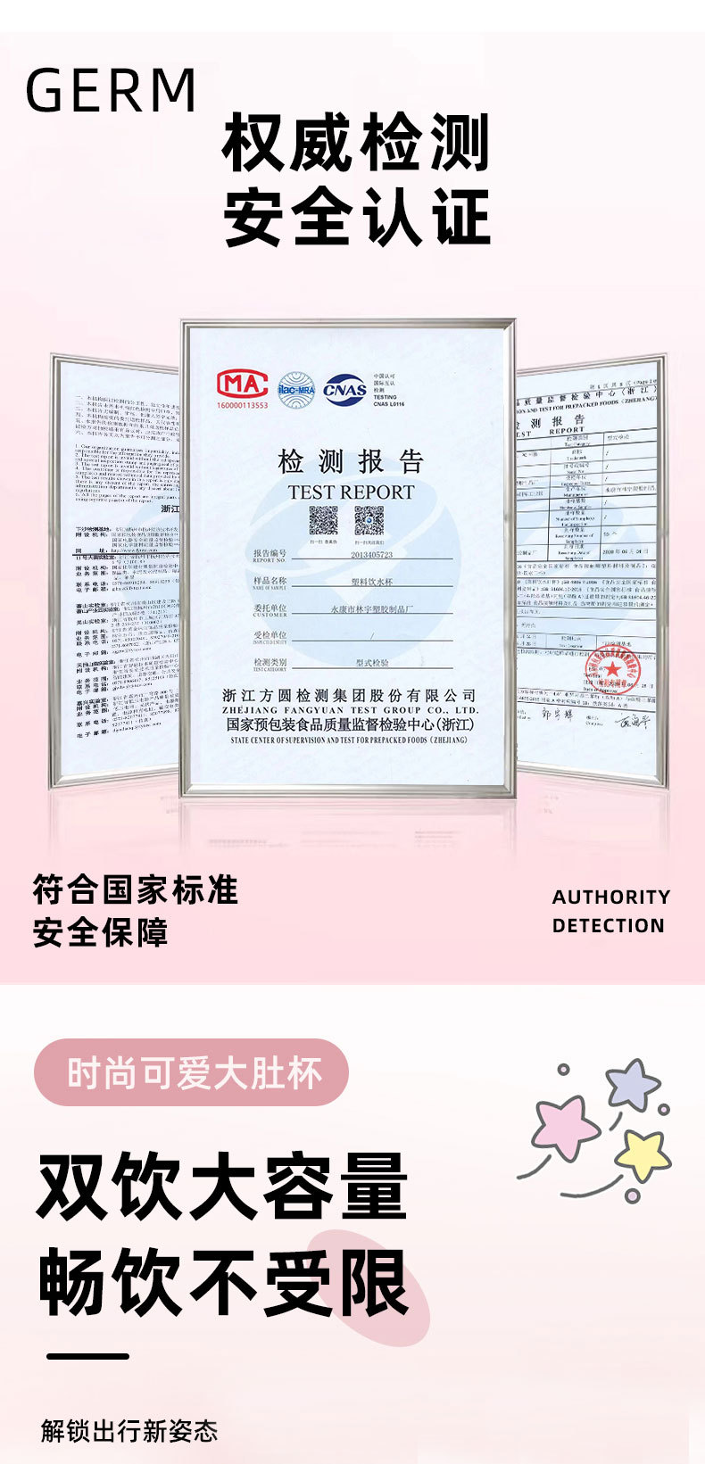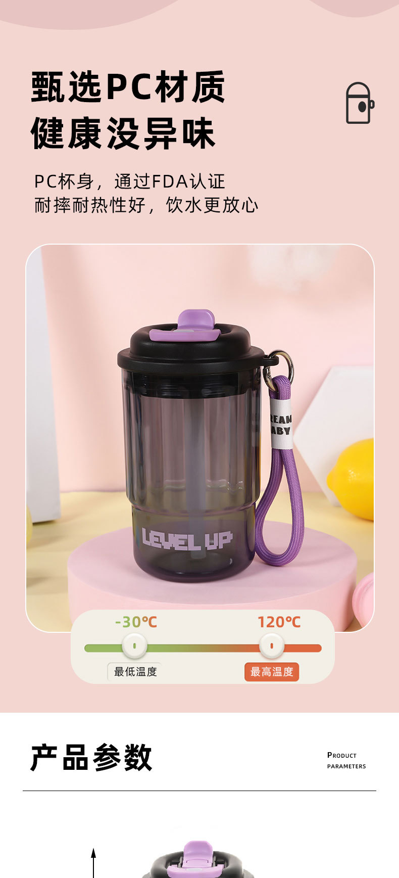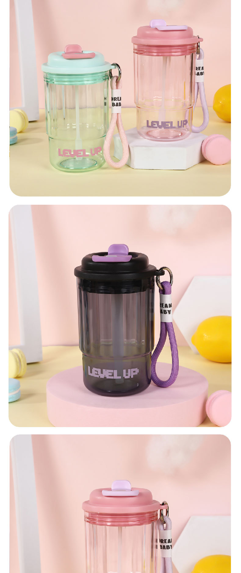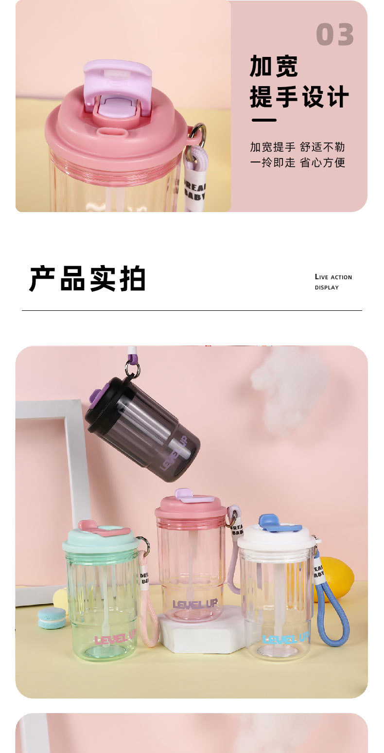 Gelas air, gelas kopi, gelas khusus anak perempuan dengan sedotan, botol minum plastik kapasitas besar untuk pelajar, botol air, botol cola, portabel.