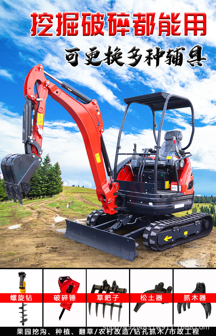 Ekskavator kecil rumah tangga menggali miniatur pertanian penggali mikro 1 ton teknik menghancurkan 10 ekskavator kecil Orchard kait mesin 2 ton