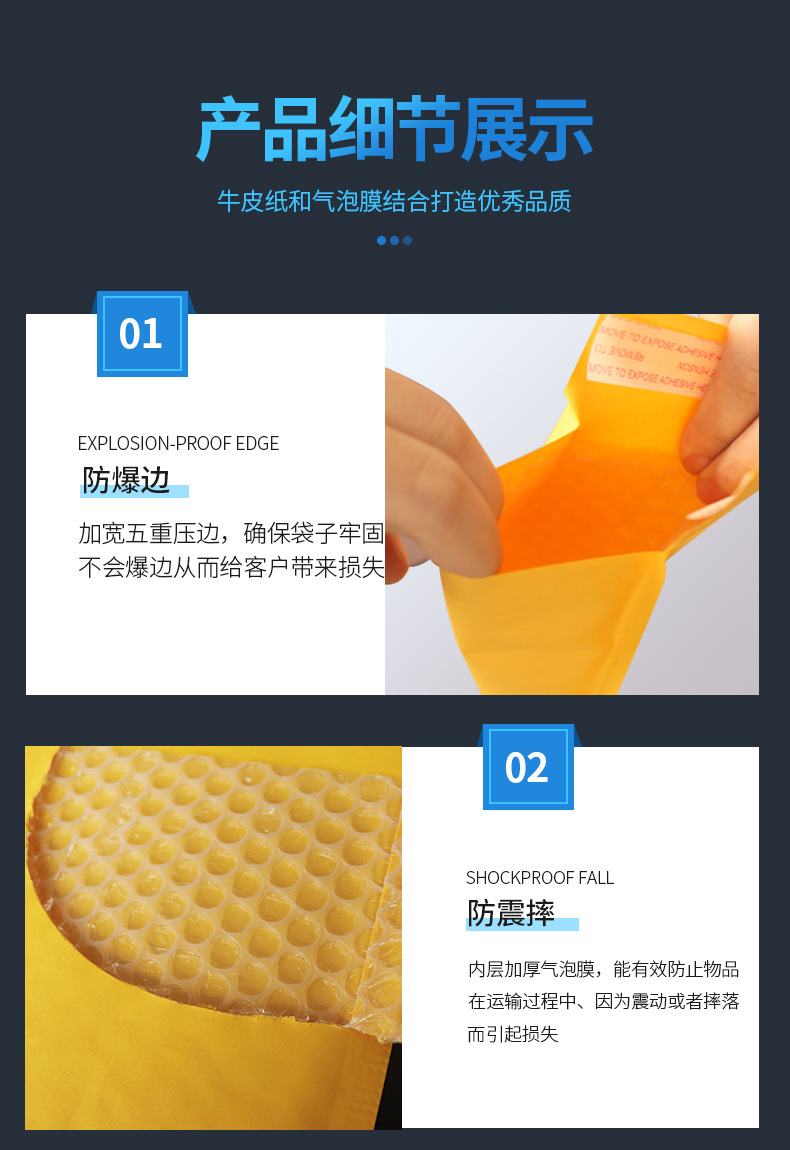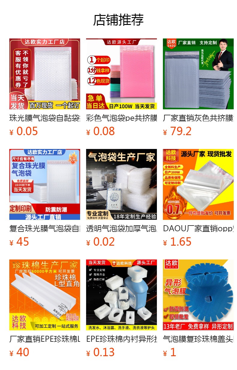 我们专业生产批发:加厚牛皮纸气泡袋、复合珠光膜气泡袋、彩色共挤膜汽泡袋、透明气泡袋等。气泡袋整箱包邮!整箱包邮!!整箱包邮!!!整箱优先发货,散货后发出,所以请您以整箱或者整箱数量的倍数拍,感谢您的支持和理解。合作愉快,祝您生意兴隆!