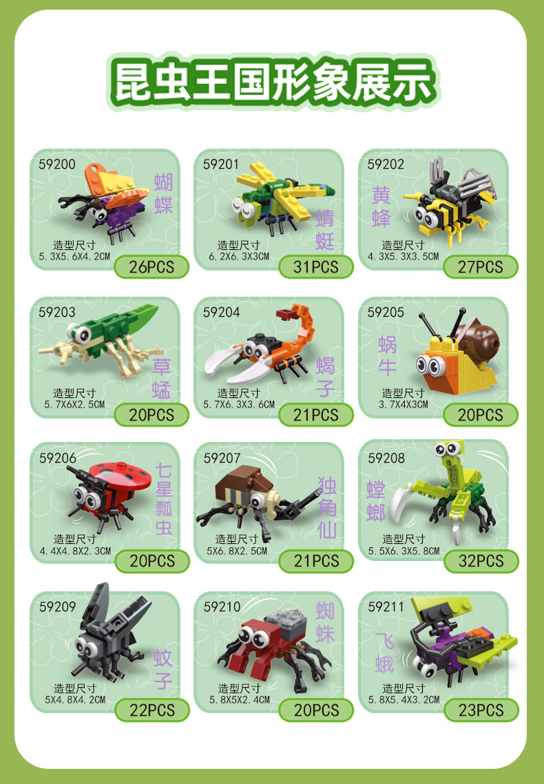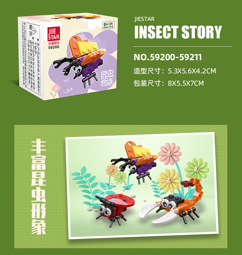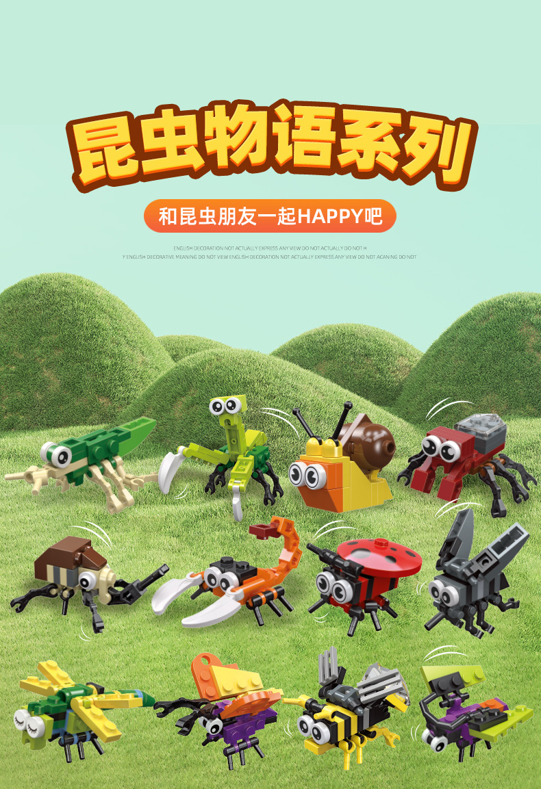 Cocok dengan Lego partikel kecil cerita serangga blok bangunan mainan rakitan TK institusi pendidikan alat bantu mengajar hadiah 6-12