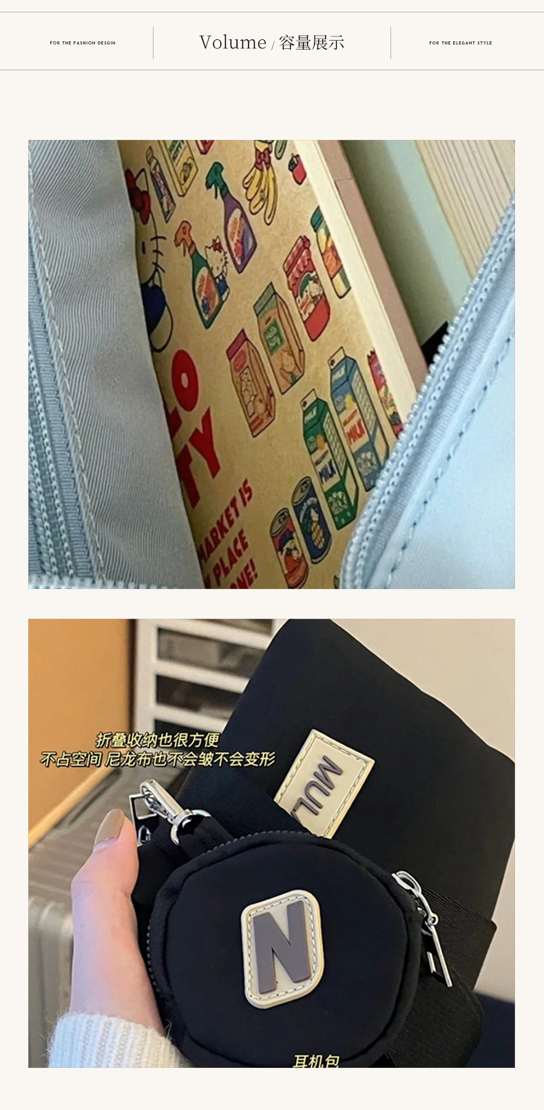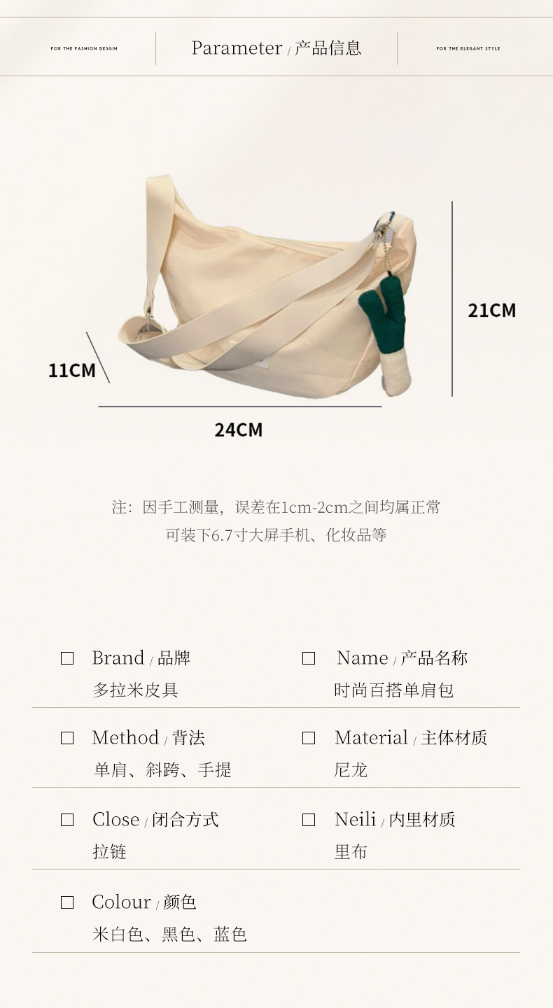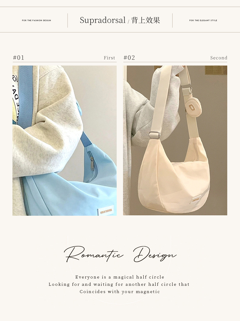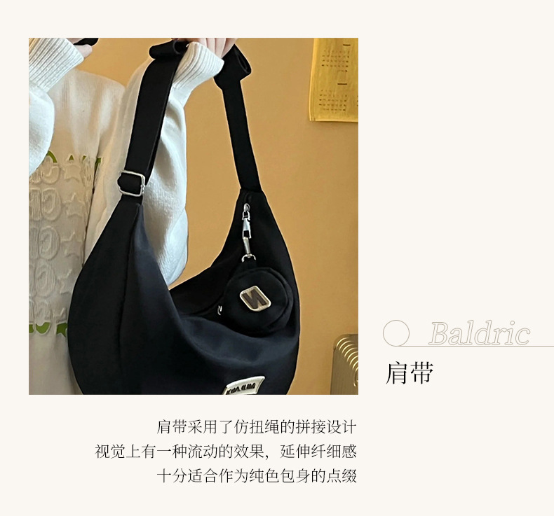 Ins Tas Selempang Kapasitas Besar Tas Pangsit Tas Selempang Tahan Air Nilon Kasual Retro Tas Bahu Pakaian Kerja Kelas Wanita
