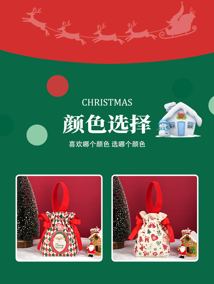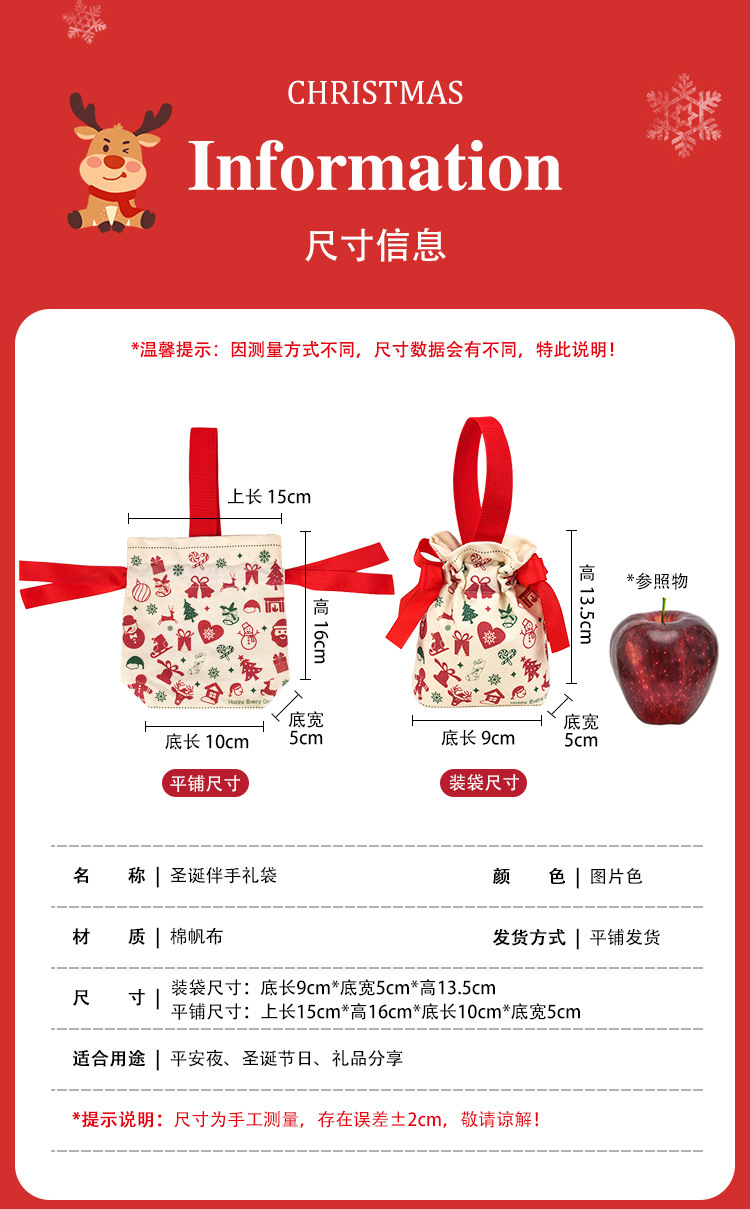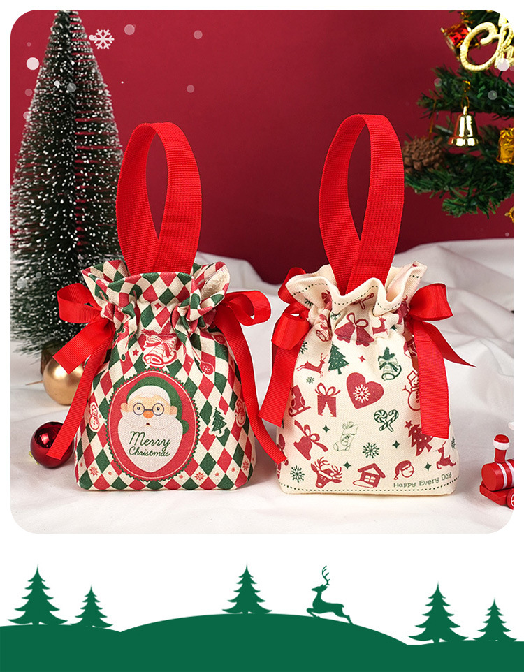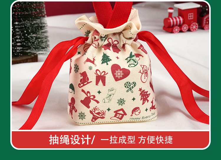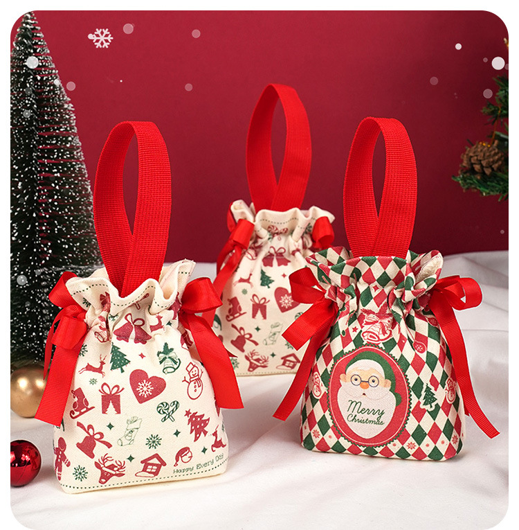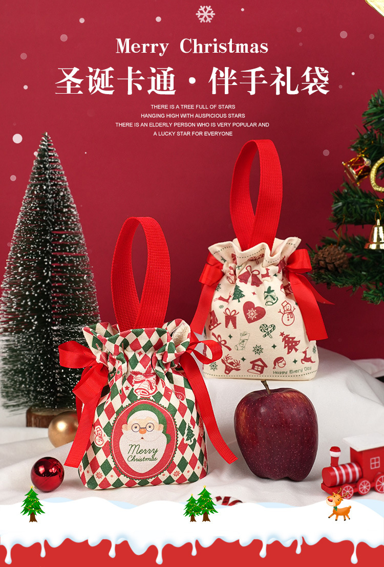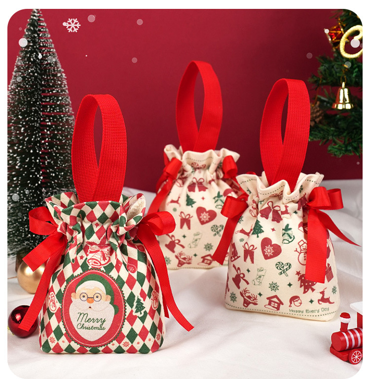 Tas kanvas jinjing apel Natal untuk hadiah Santa Claus lintas batas, tas hadiah Natal, tas hadiah liburan