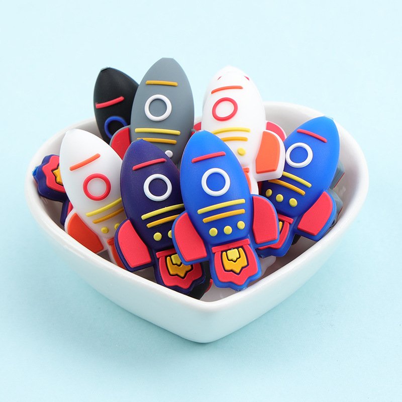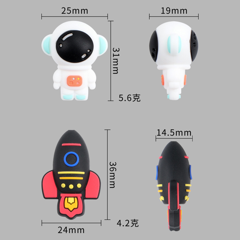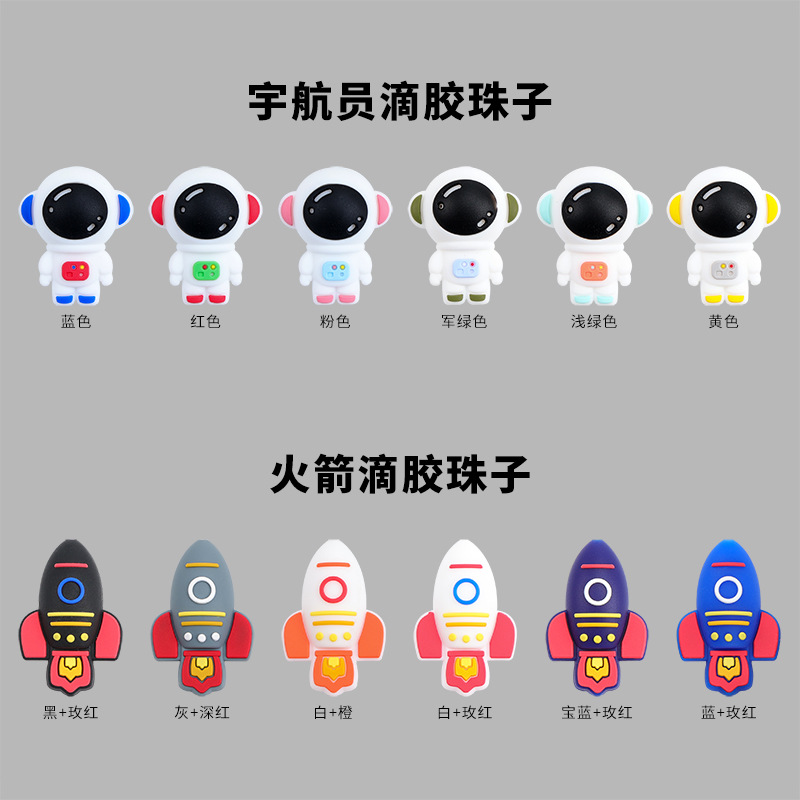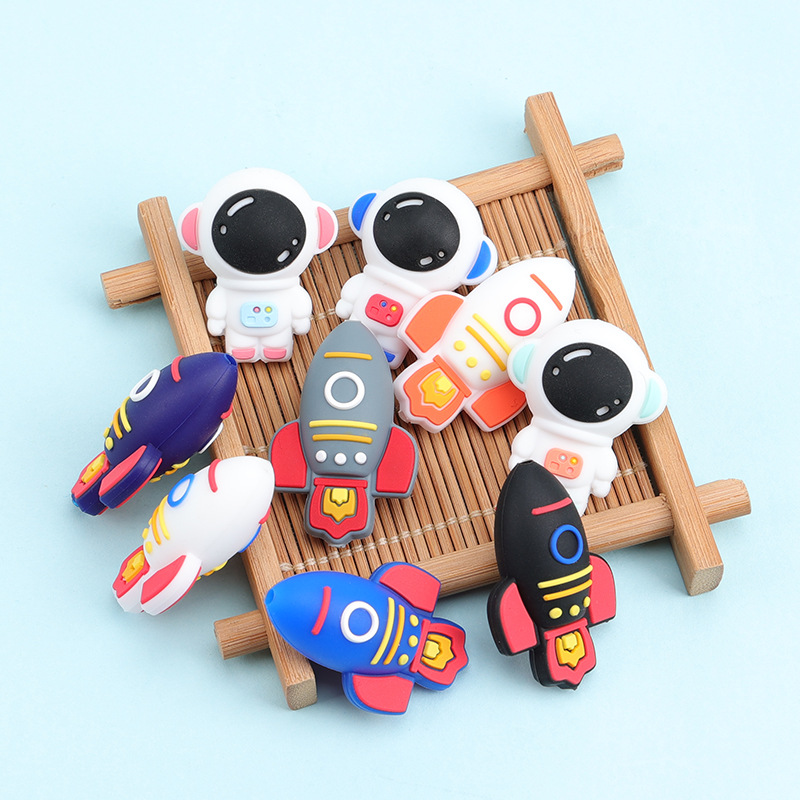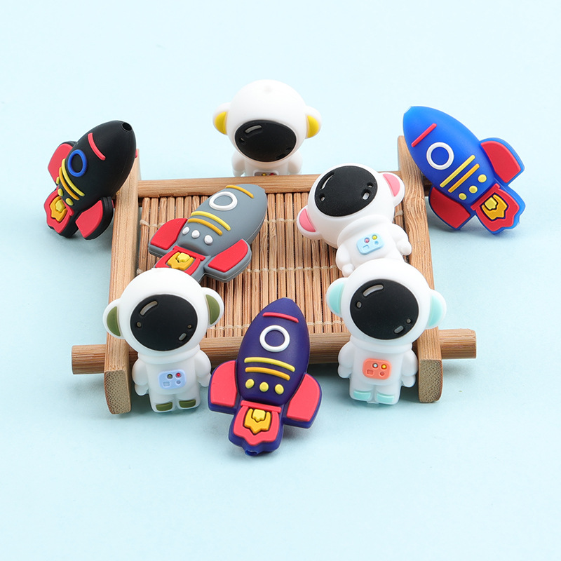 Produk Baru Kosmonot Manik-manik Silikon Tiga Dimensi Kalung Anak Kartun Manik-manik Kartun Gel Gigi Kosong Kostum