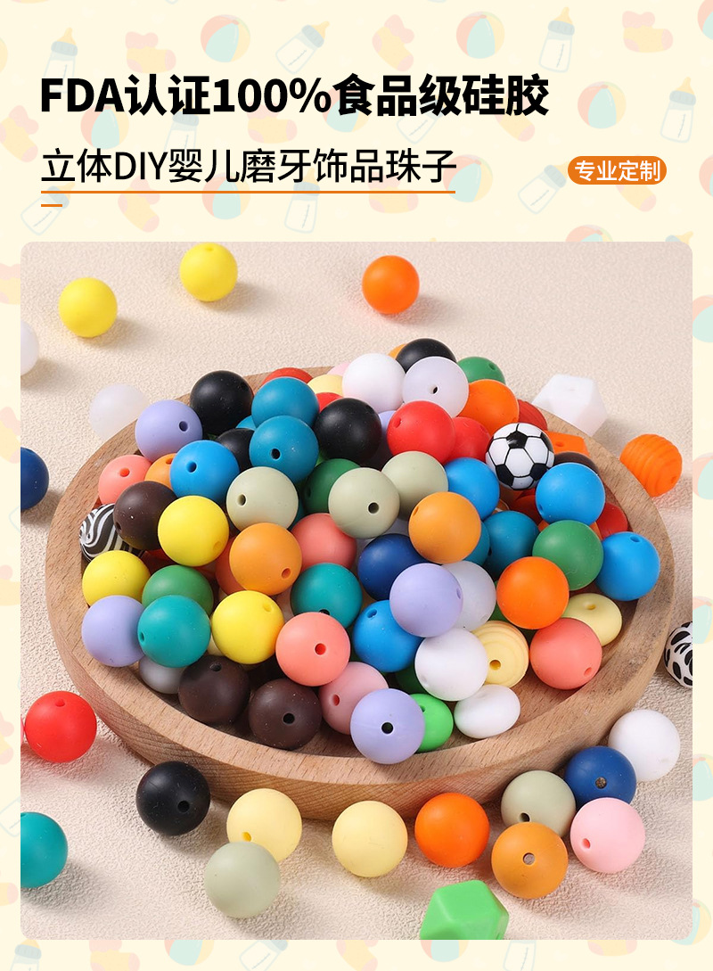 Amazon perhiasan silikon bermanik-manik setelan dot bayi rantai macan tutul longgar aksesori manik-manik silikon kelas makanan grosir