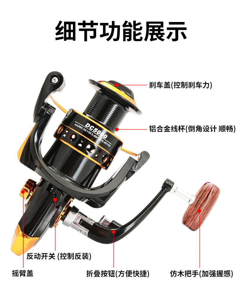 Delai joran pancing logam penuh, reel pancing putar, joran pancing laut, roda pancing batu
