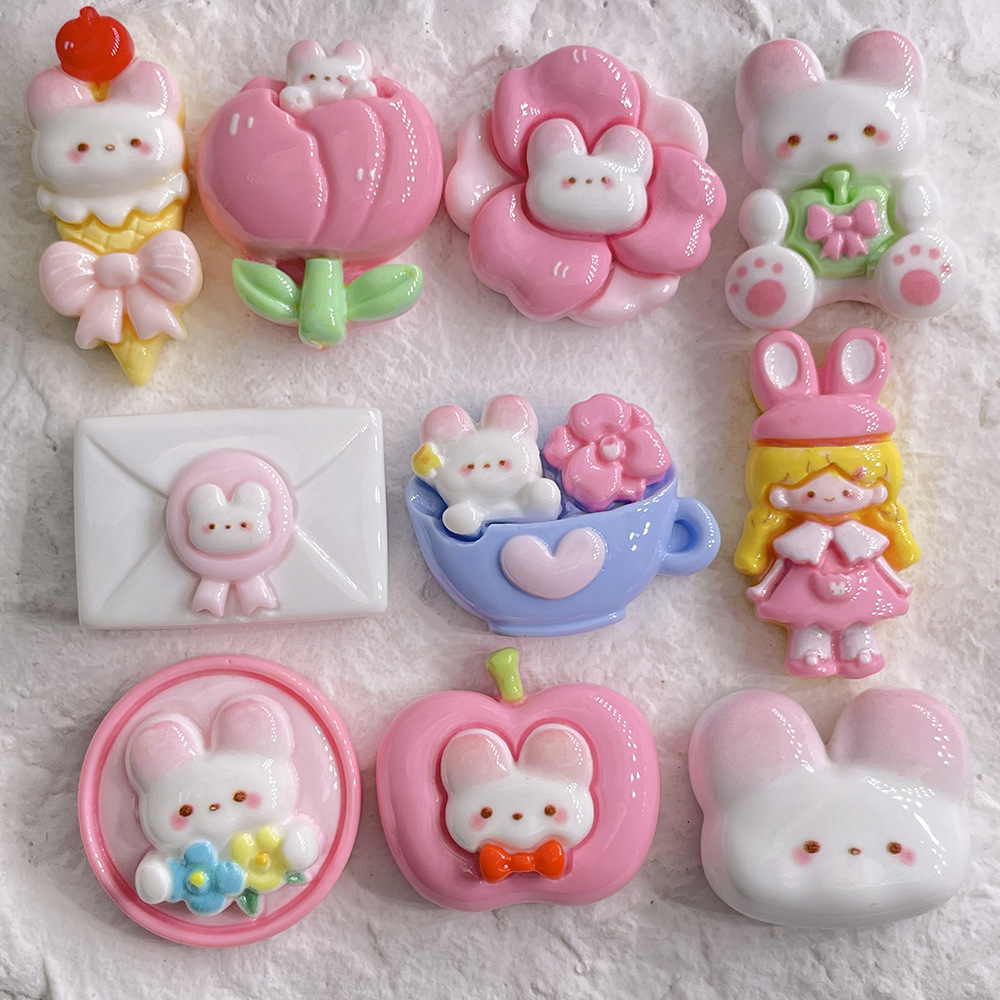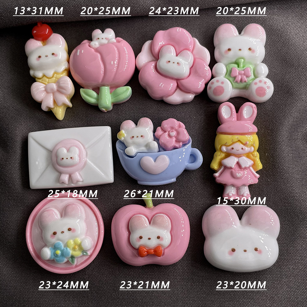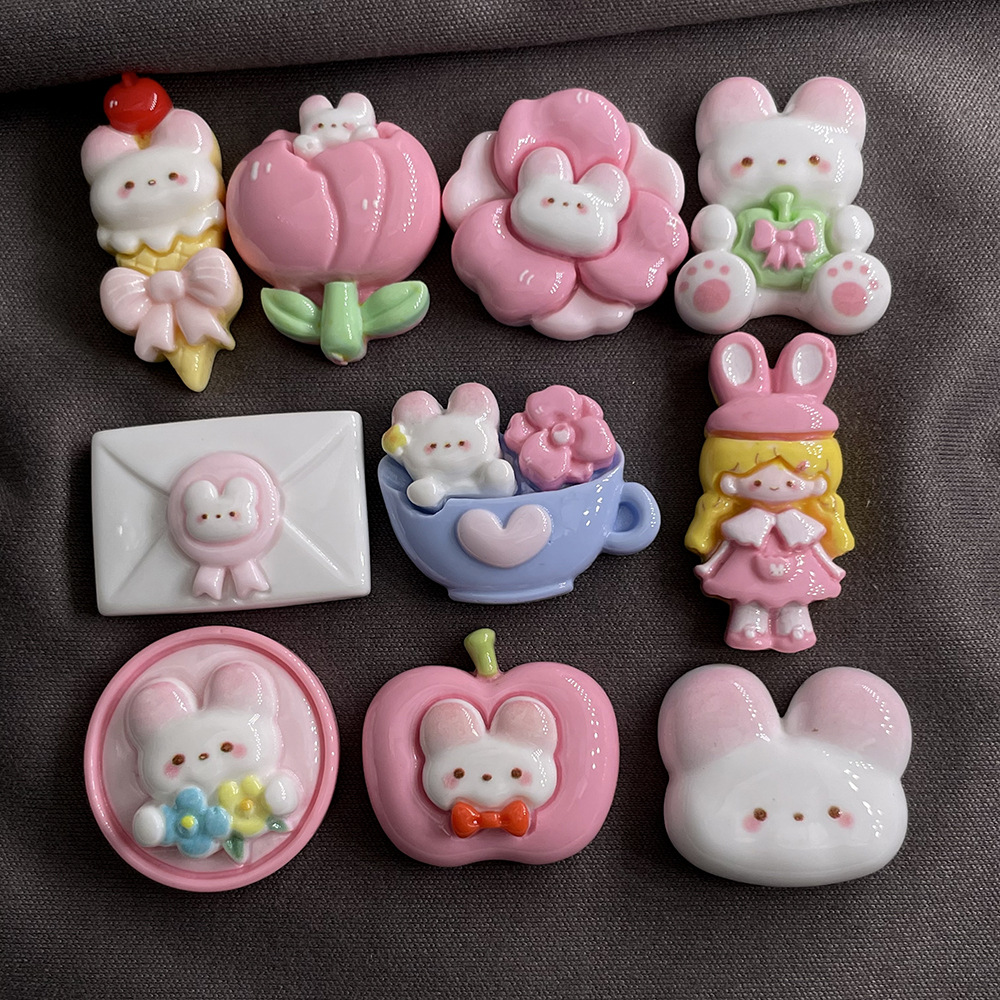 Aksesori perhiasan kelinci anak perempuan 10 setelan resin kartun lem krim cangkang ponsel diy patch jepit rambut buatan tangan