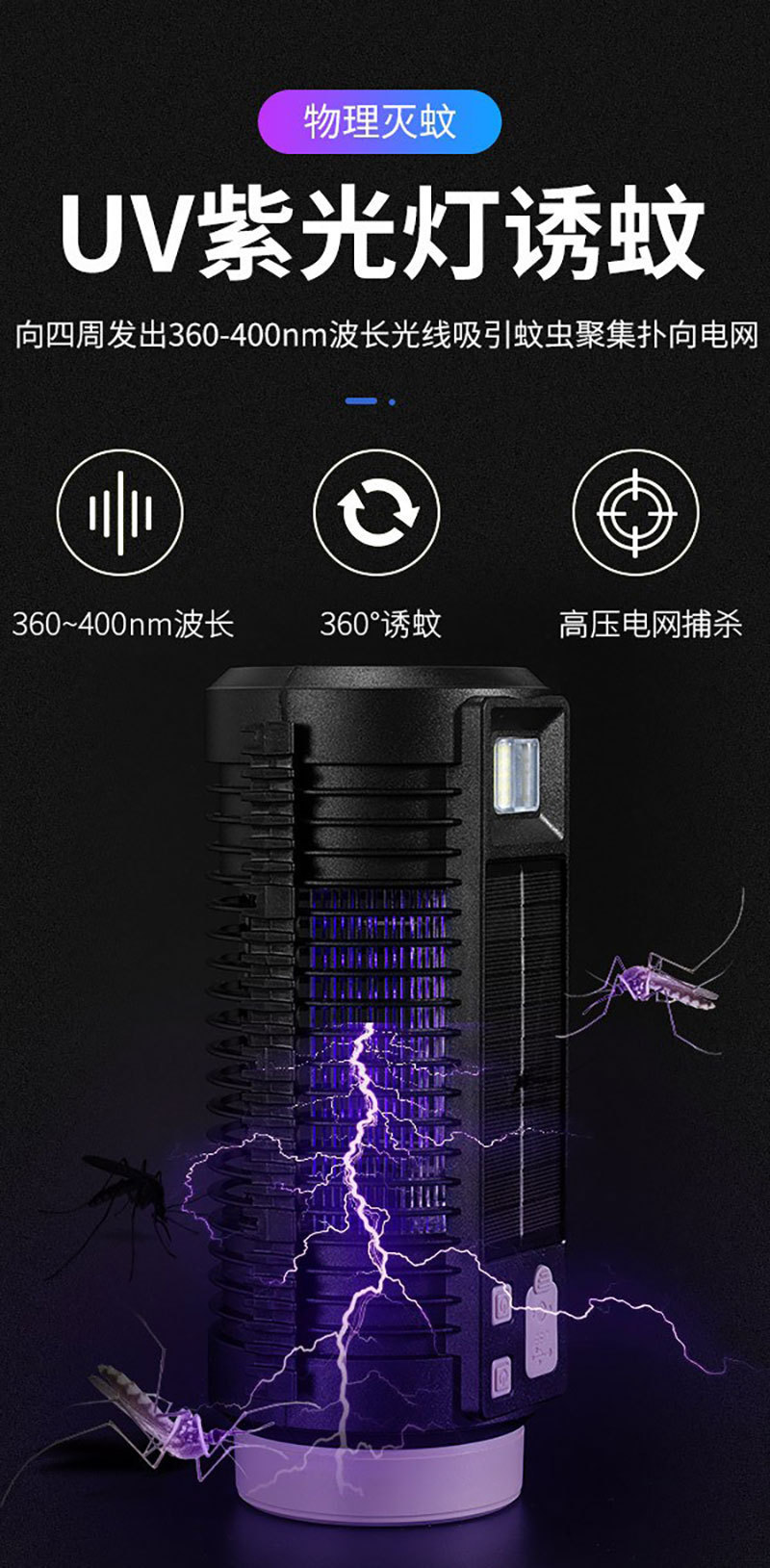 手柄多角度调节、诱蚊灭蚊