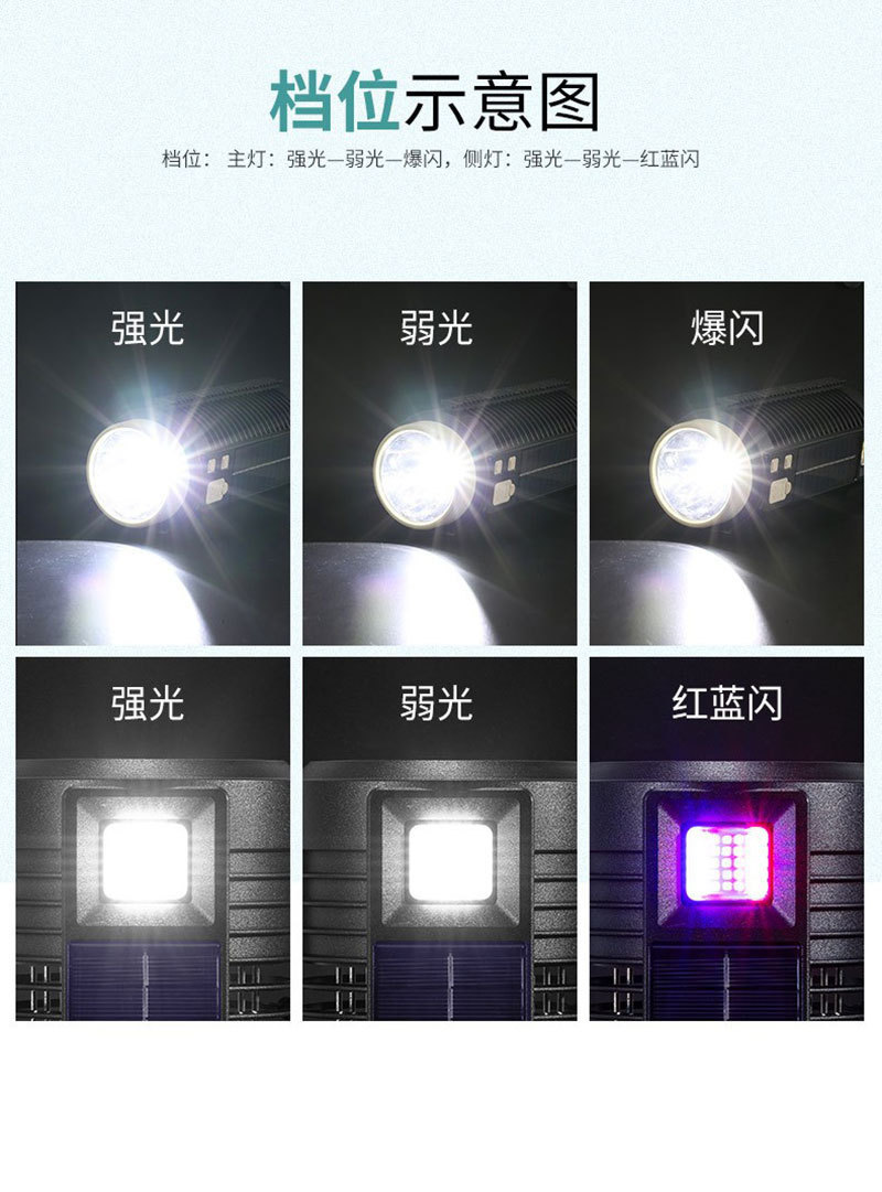侧灯,紫光 - 白光强 - 白光弱 -红蓝闪