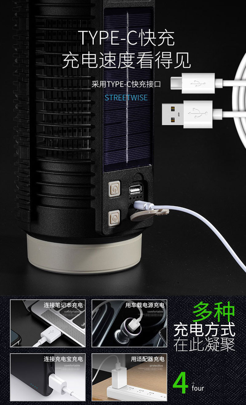 太阳能充电、电量显示、Type-C接口