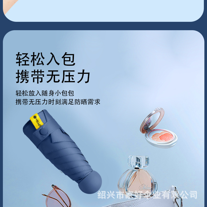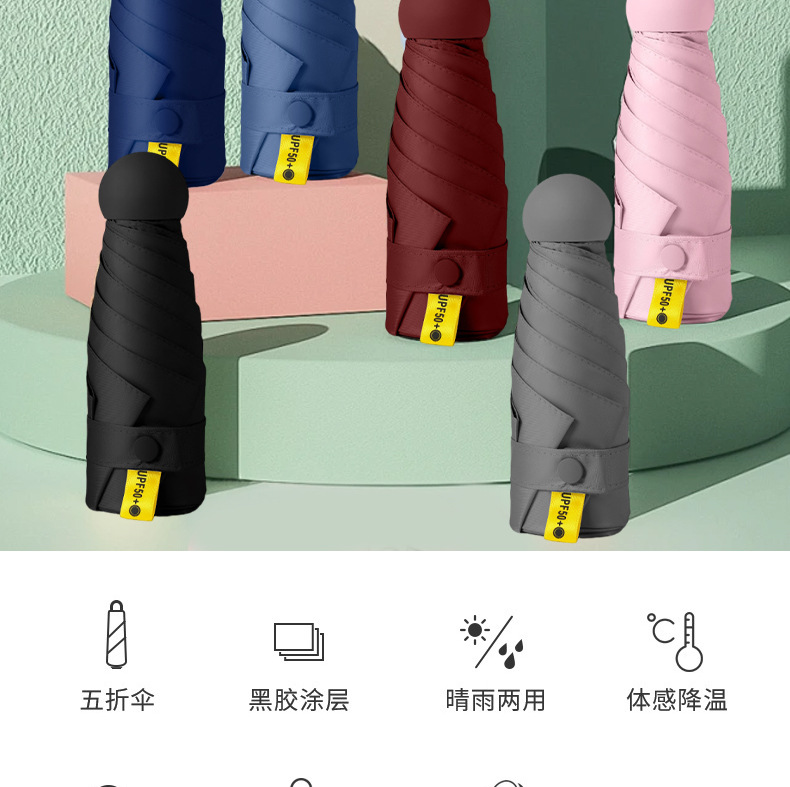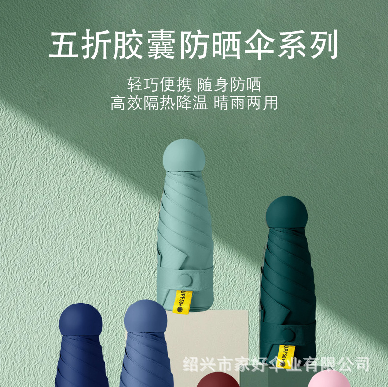 Payung kecil mini portabel dua kegunaan, payung lipat lima kantung anti UV tahan matahari tahan matahari