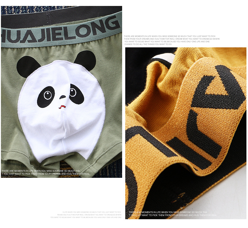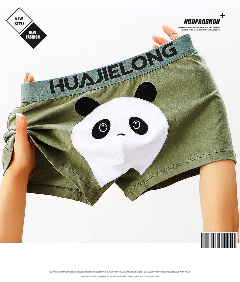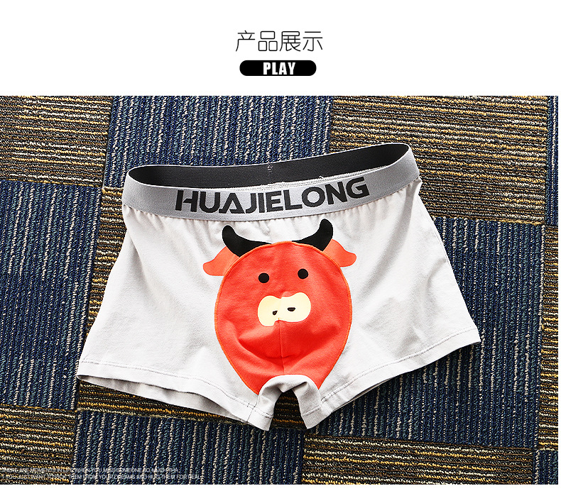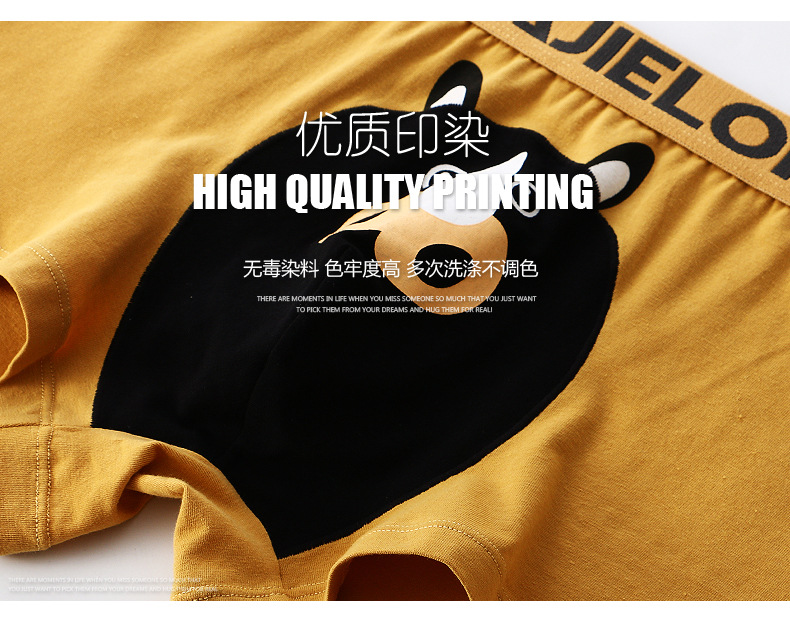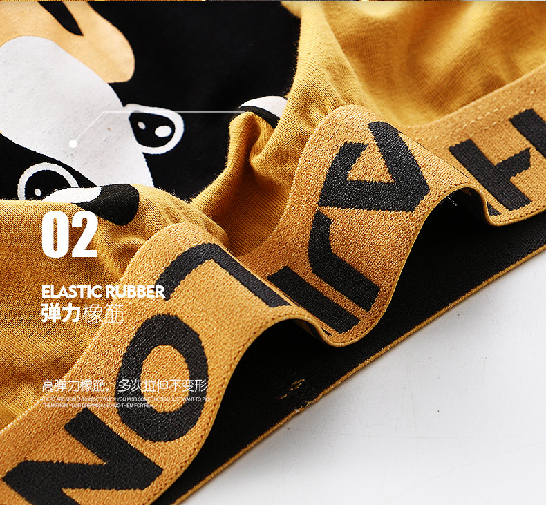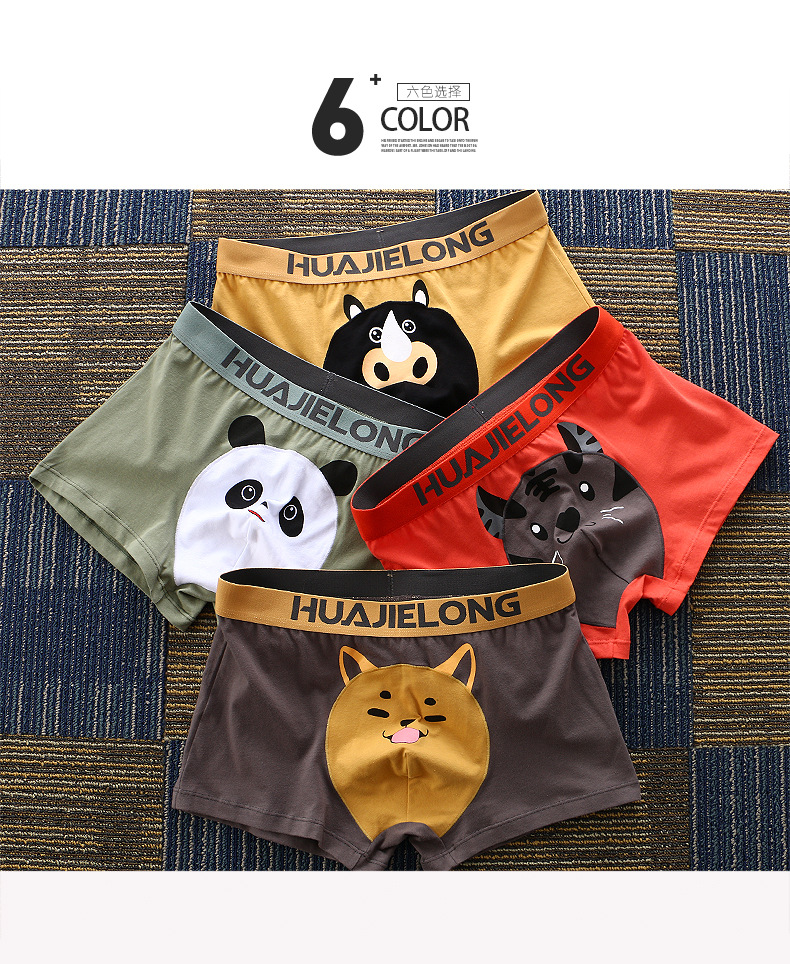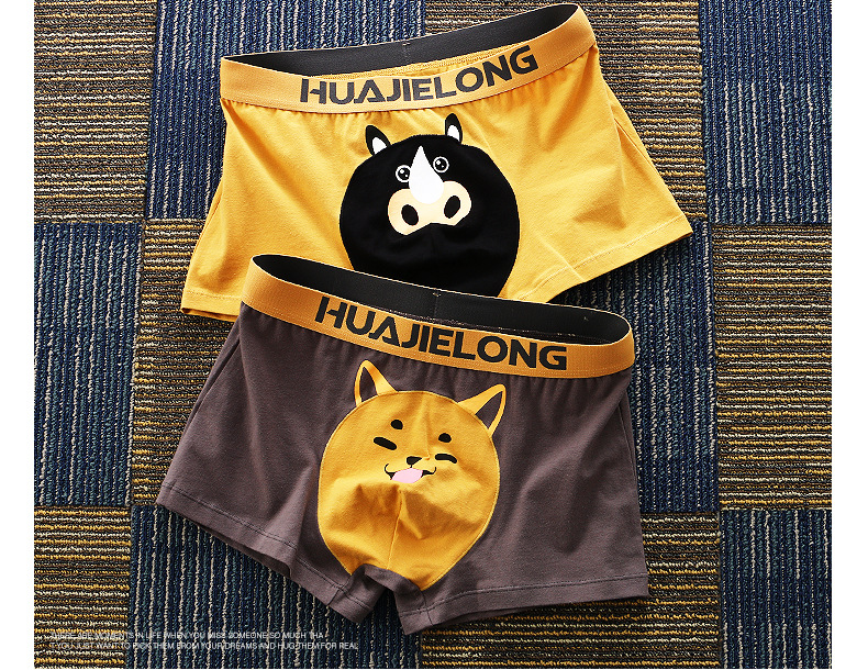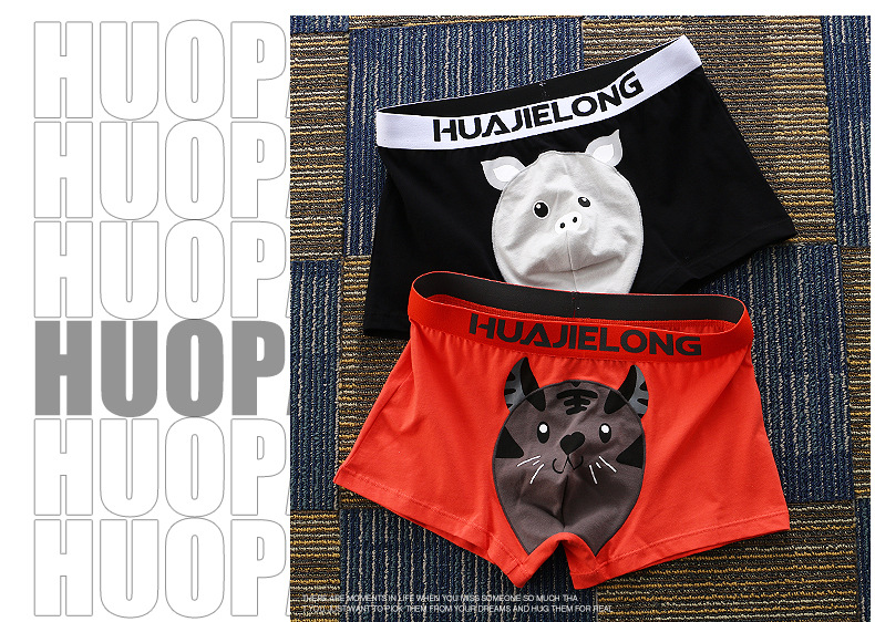 Huajielong seri motif kartun pria, celana dalam boxer katun pinggang sedang antilembap