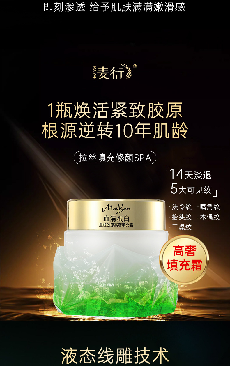Maiyan serum rekombinan protein, kolagen pengisian tinggi mewah mengisi krim disikat, krim tarik kulit melembabkan, persediaan TikTok