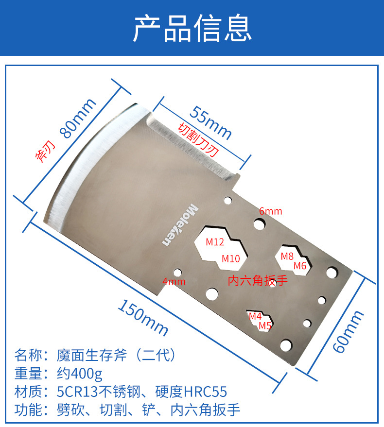 Axe bertahan hidup wajah ajaib multifungsi luar ruangan baja tahan karat pisau harpoon bertahan hidup kartu portabel Kemah petualangan mendaki