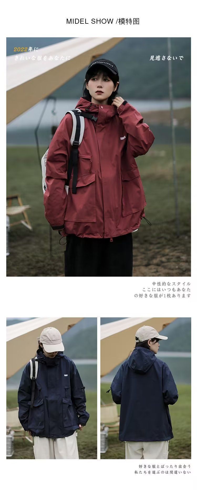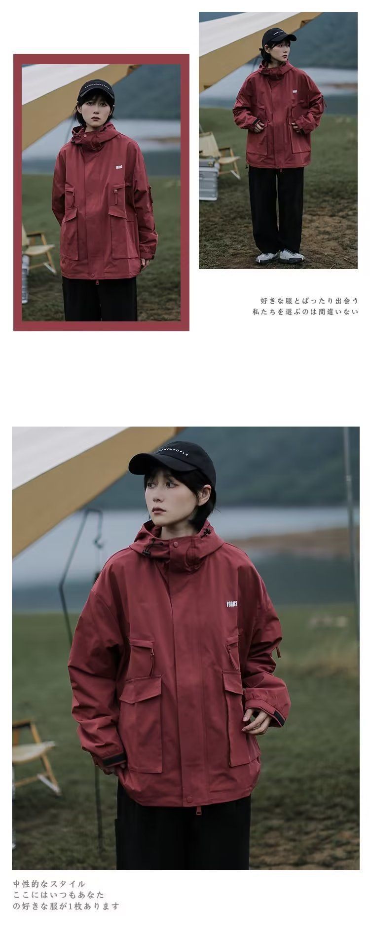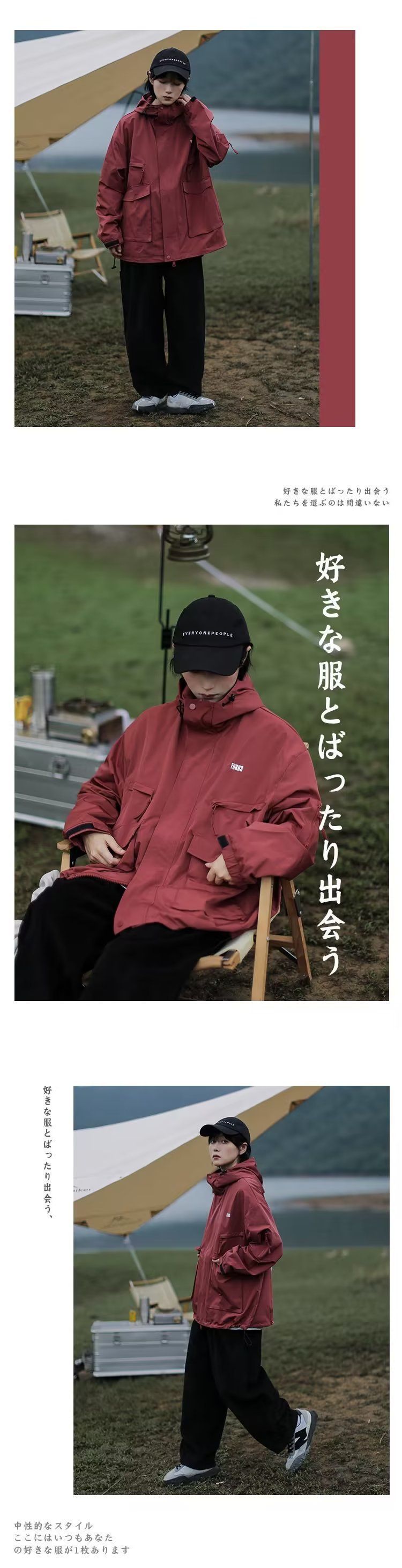 Cityboy jaket bertudung merah pria dan wanita, pakaian mendaki gunung luar ruangan Jepang Musim Semi dan Gugur fungsional longgar