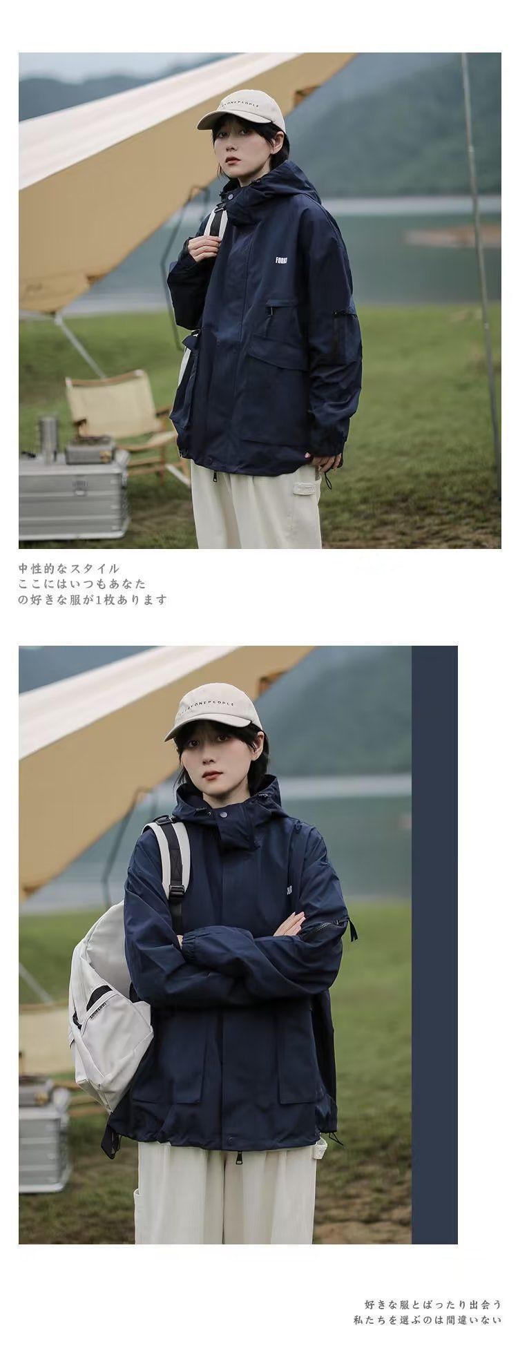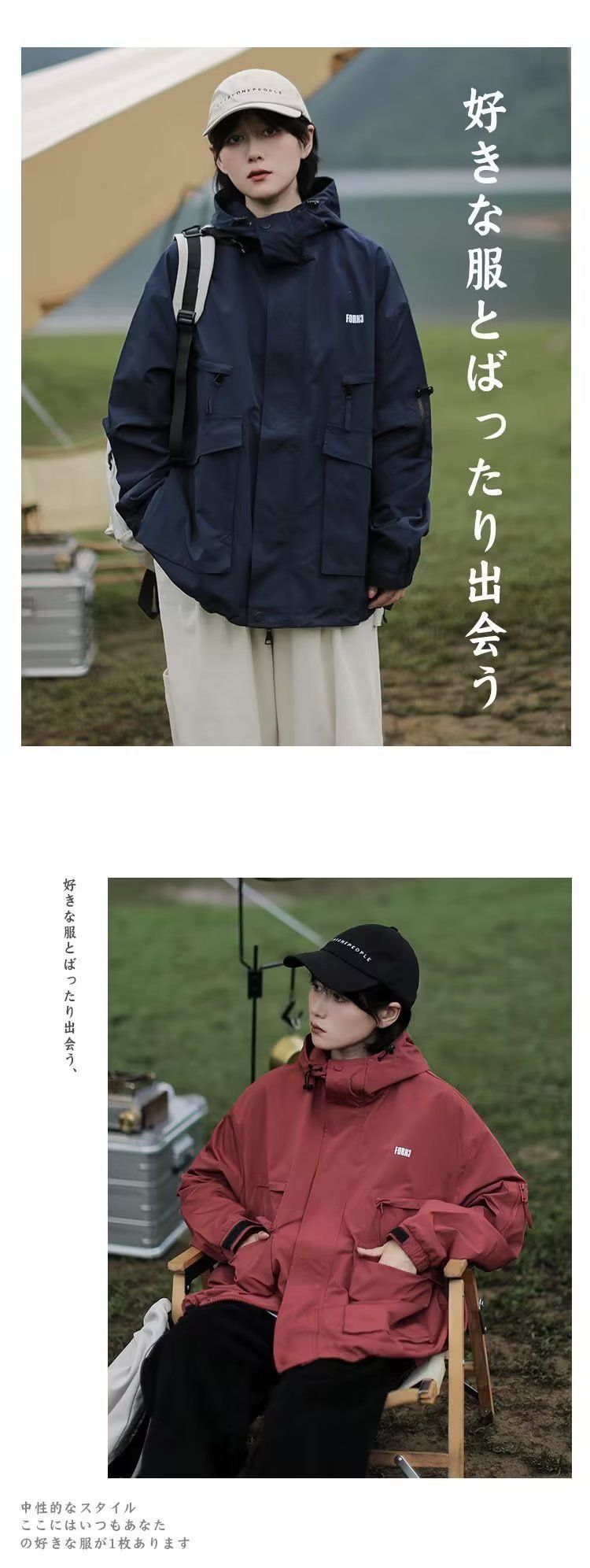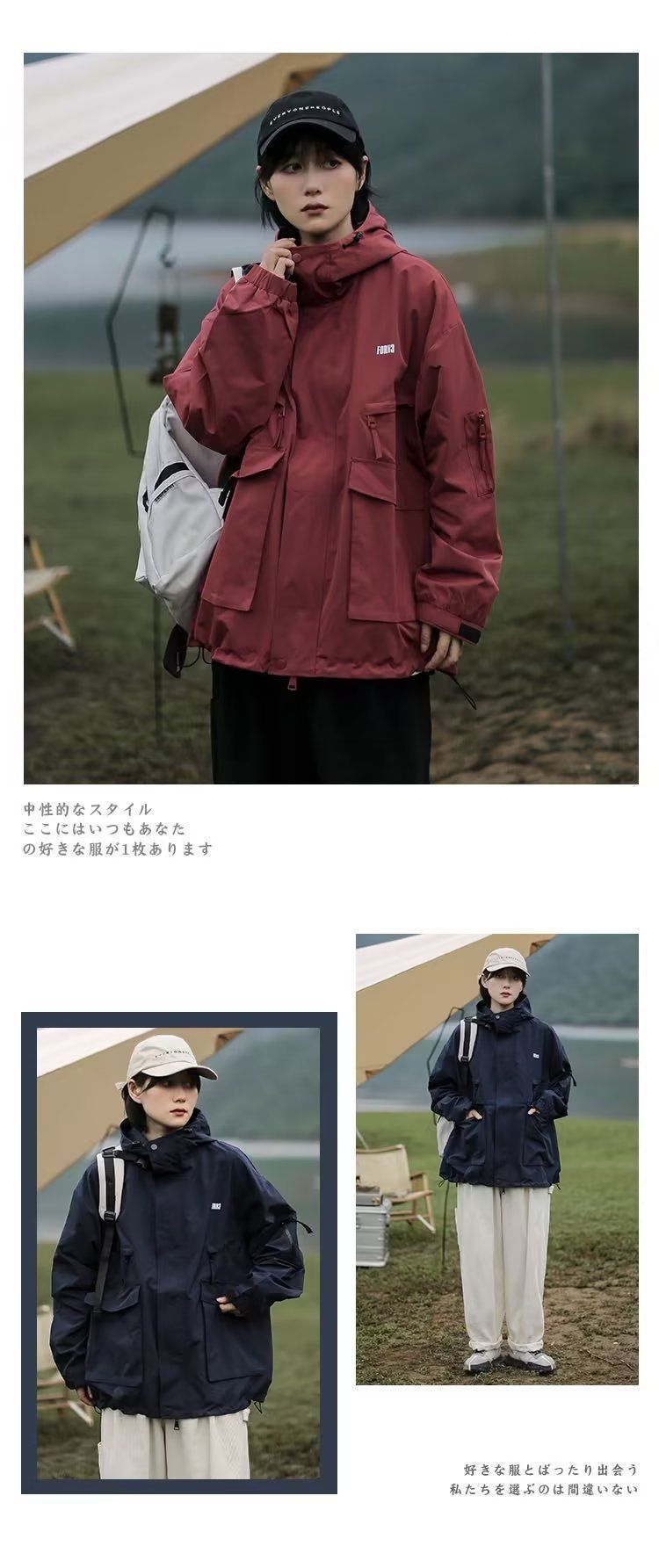 Cityboy jaket bertudung merah pria dan wanita, pakaian mendaki gunung luar ruangan Jepang Musim Semi dan Gugur fungsional longgar