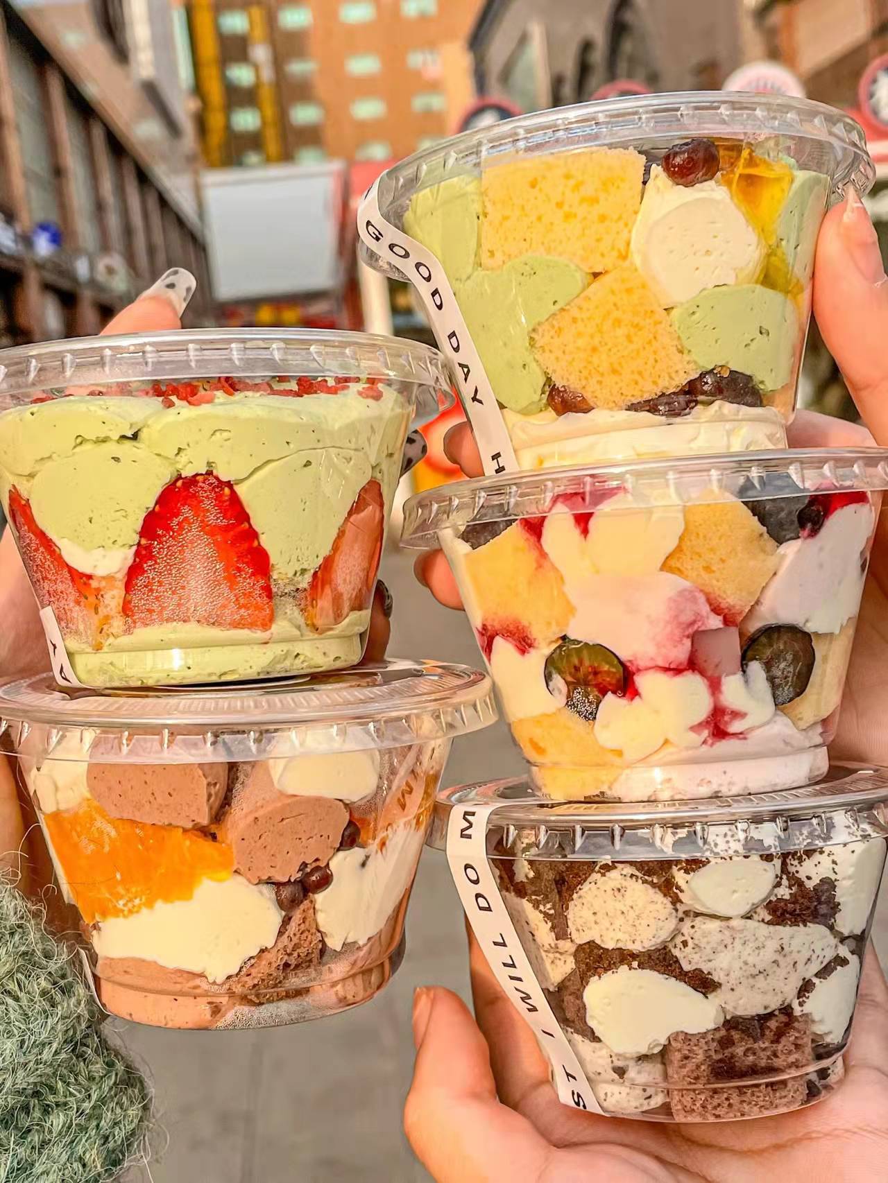 Kotak cangkir kue krim Mini plastik sekali pakai kotak kue kemasan puding Tiramisu transparan kotak kue