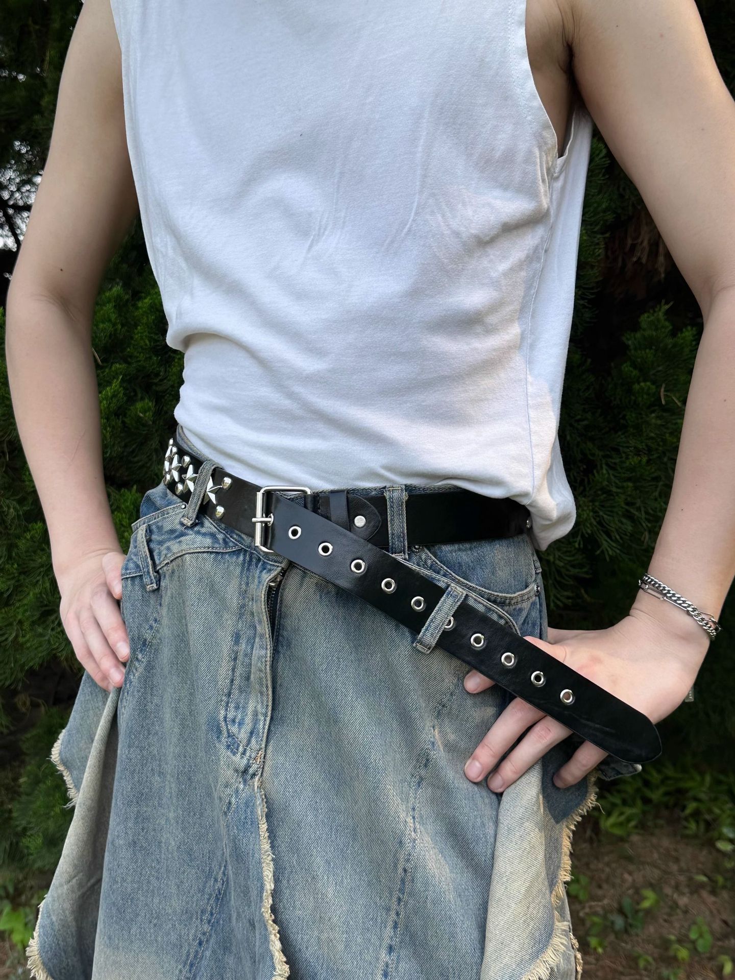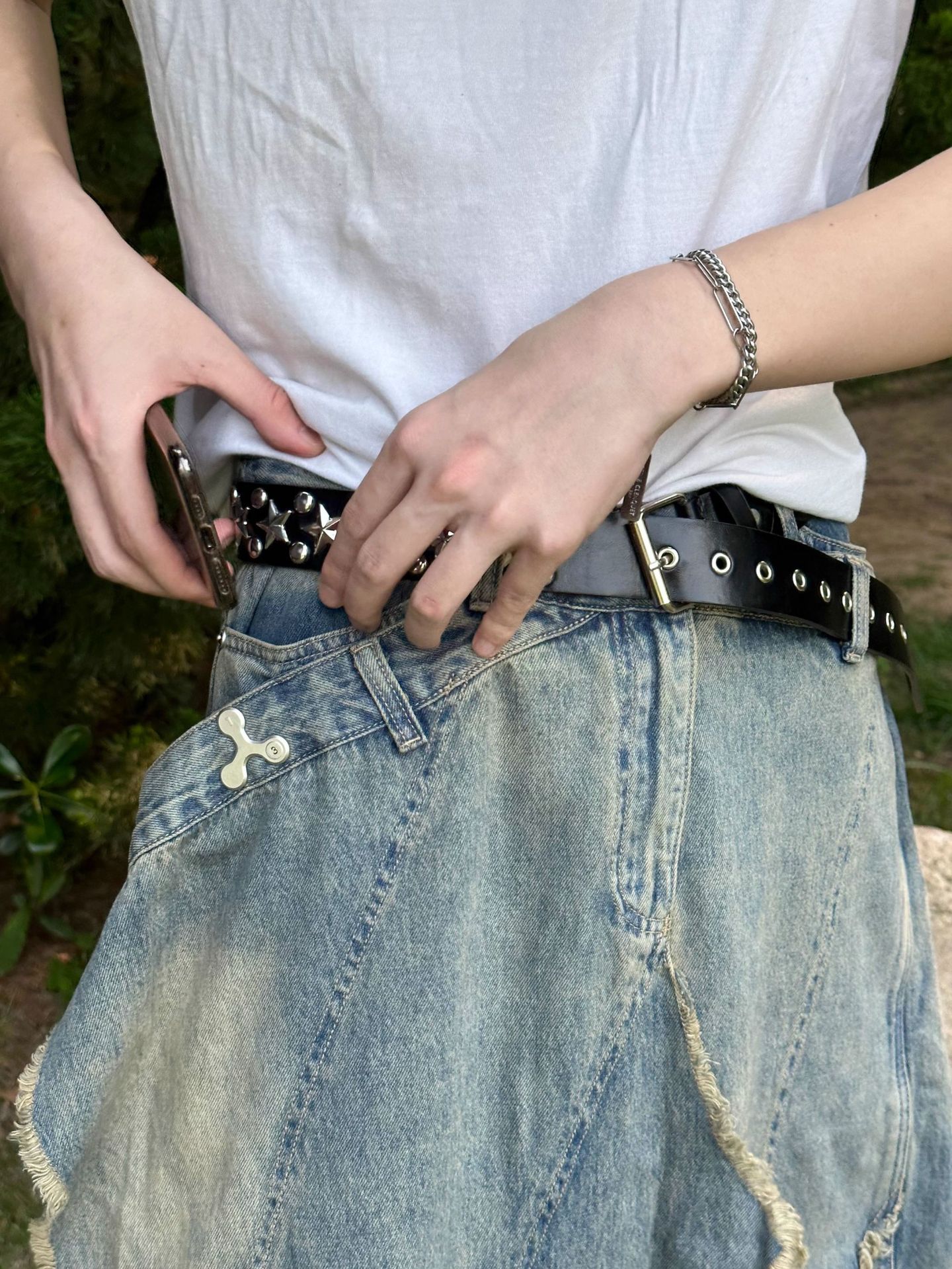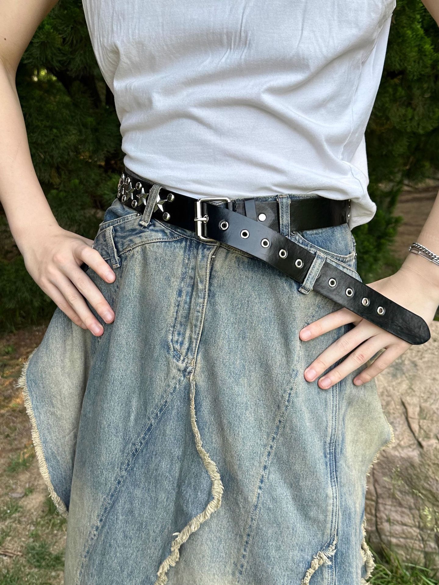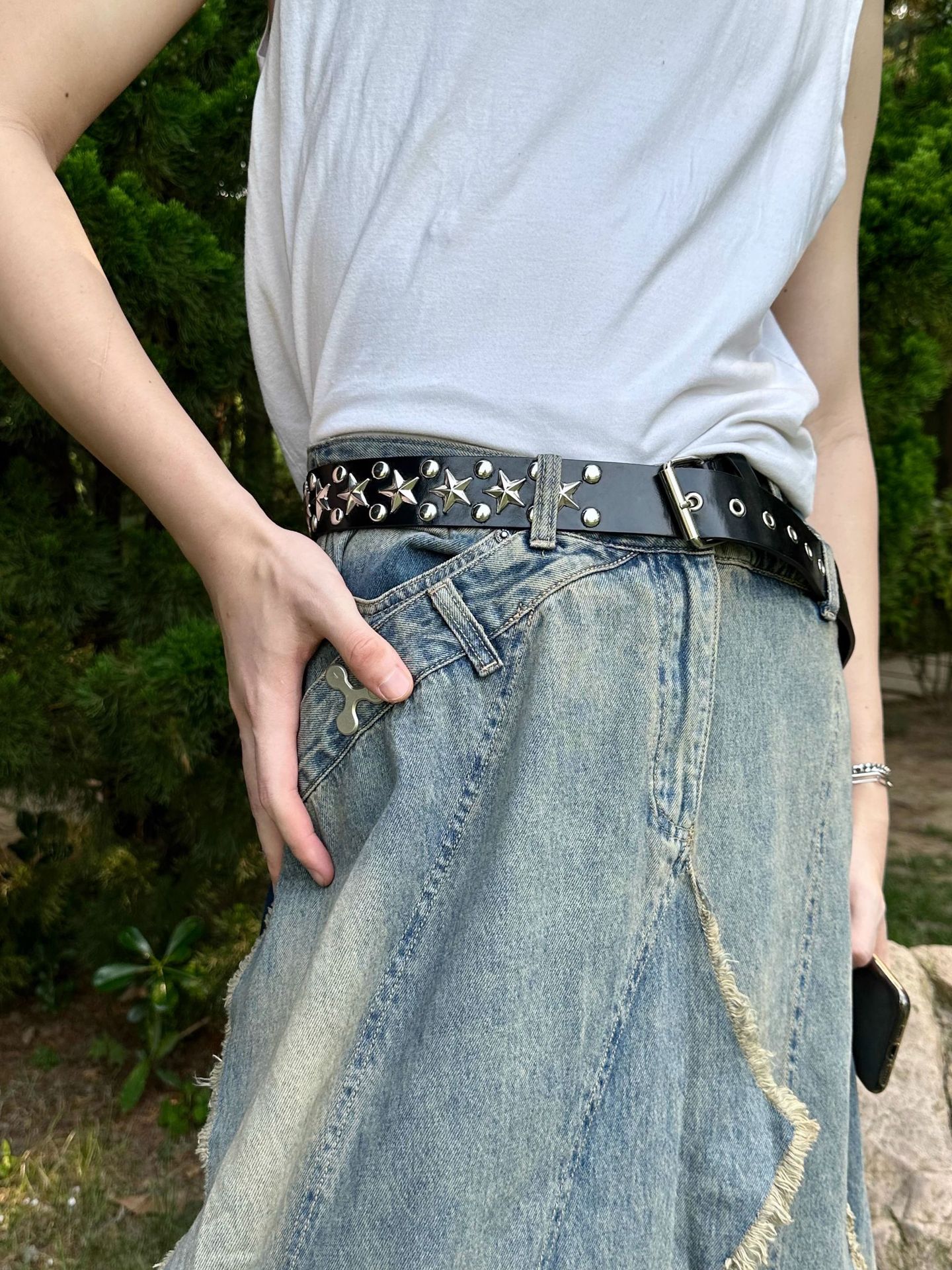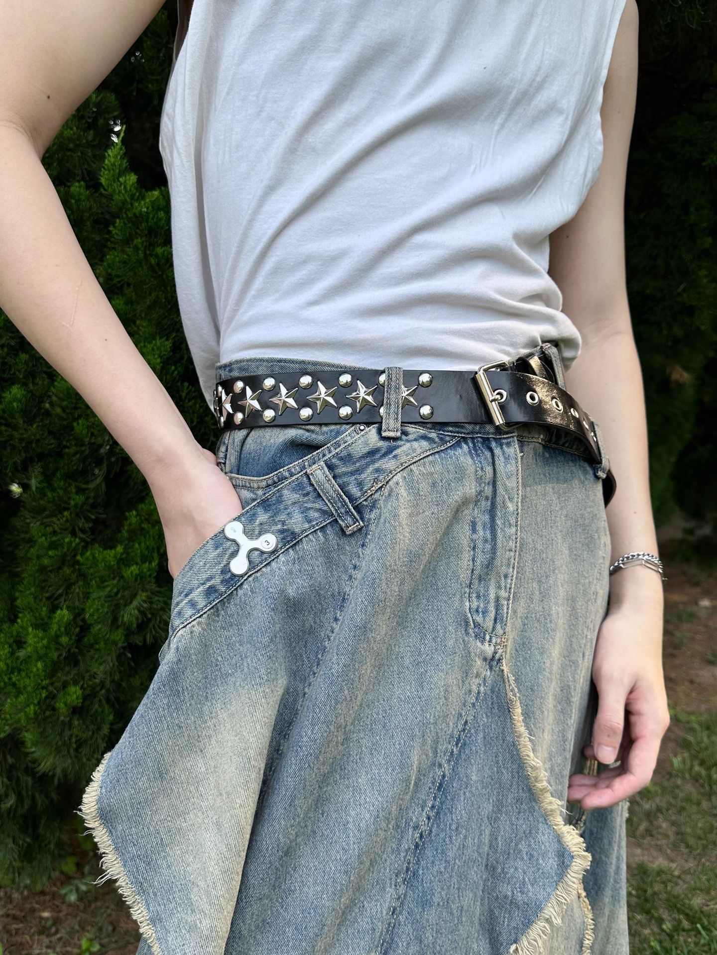 Sabuk bintang, gaya Eropa dan Amerika, punk, bintang gelap, lima titik, sabuk, paku keling 90s retro pasangan pekerjaan berat semua cocok