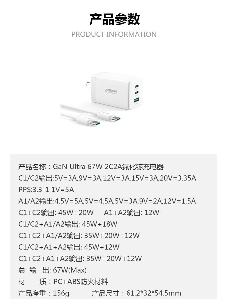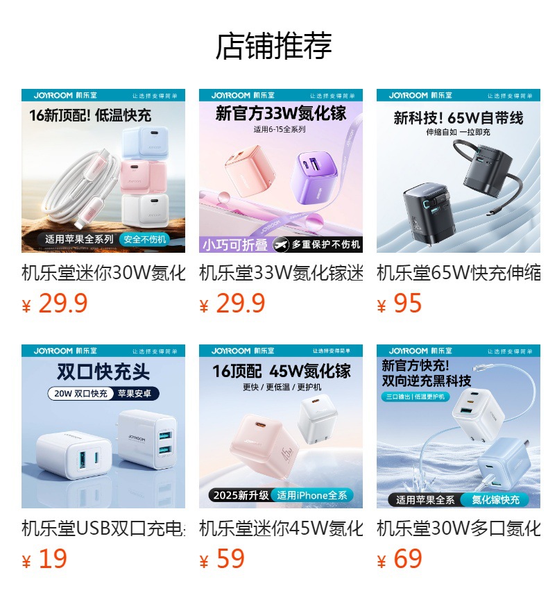 机乐堂67W氮化镓手机充电器适用iphone16快充插头PD笔记本充电头