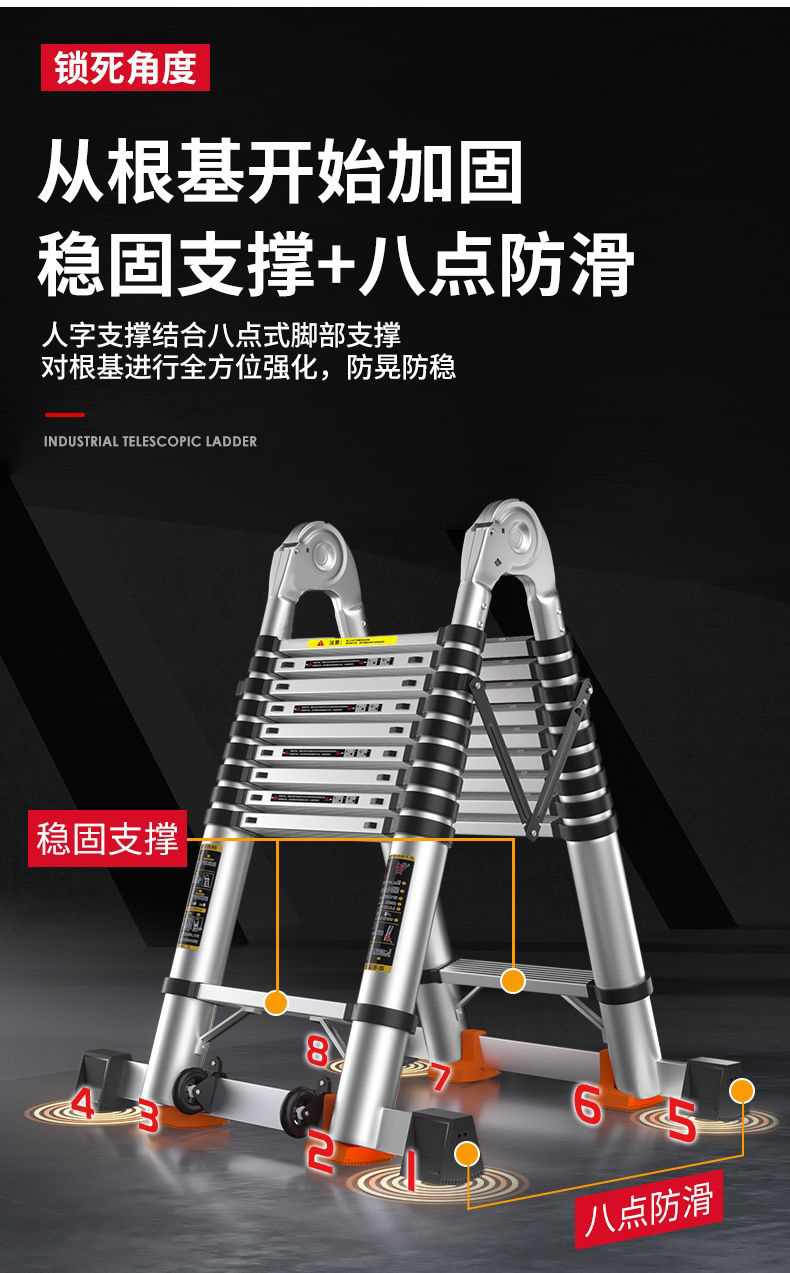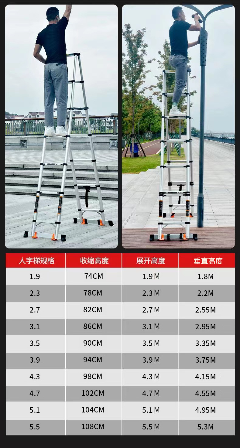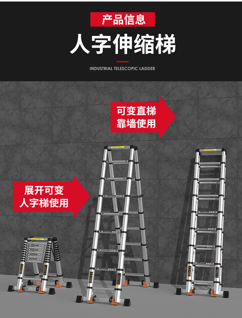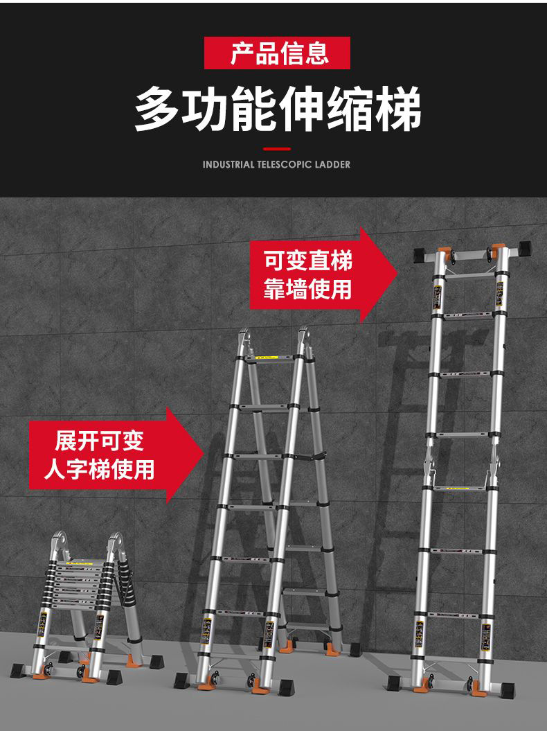 Pabrik grosir aluminium Aloi tangga teleskopik tangga herringbone menebal tangga lipat tangga teknik mengangkat multifungsi