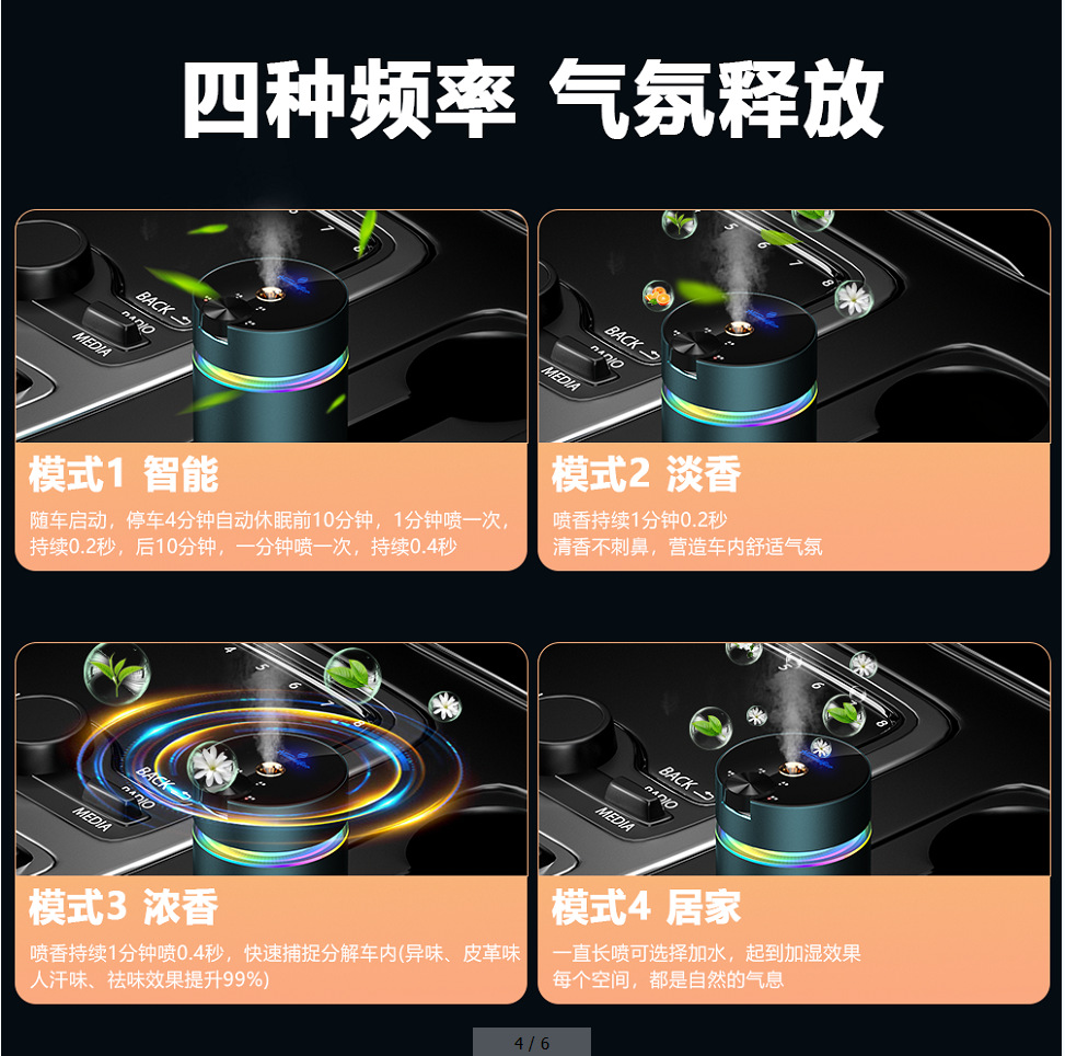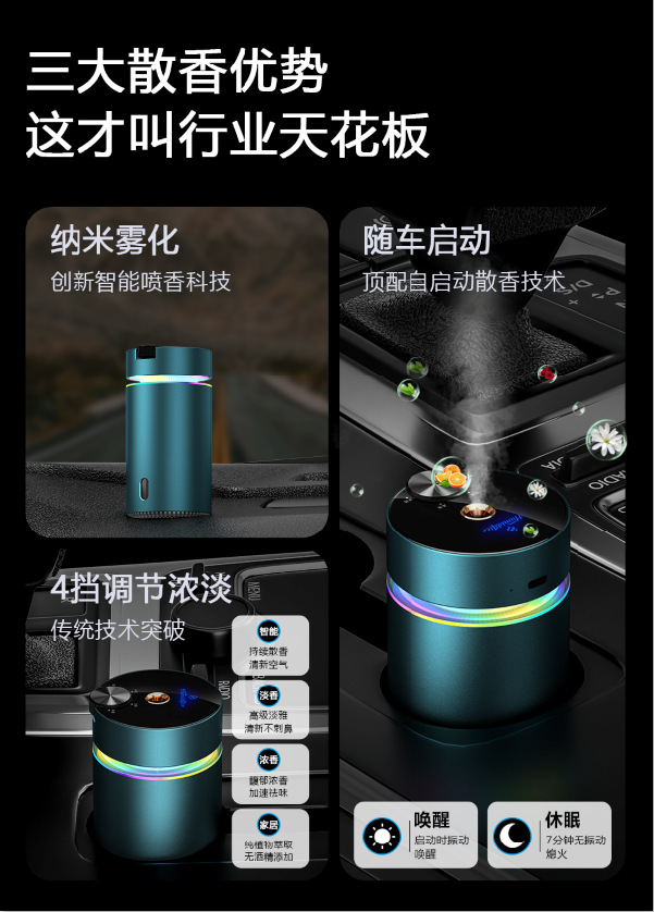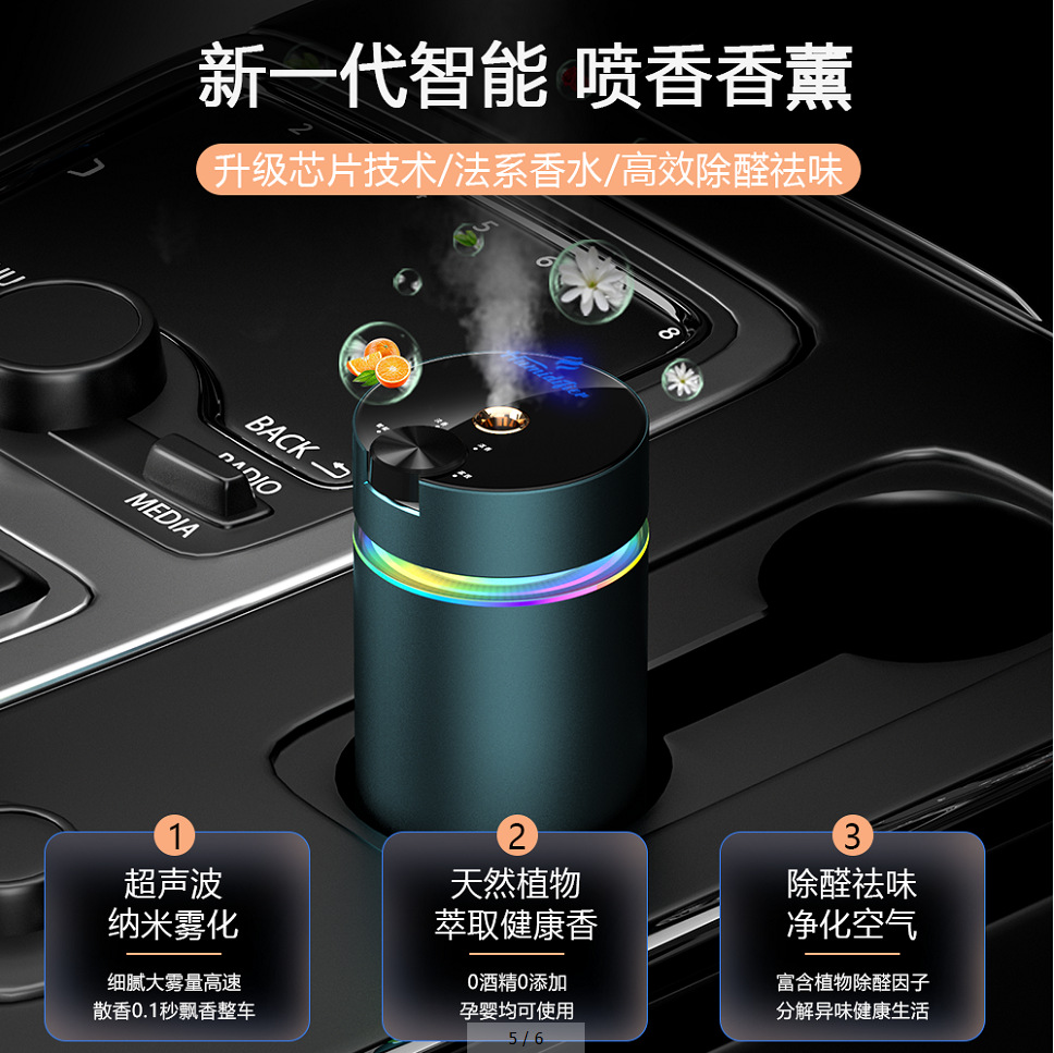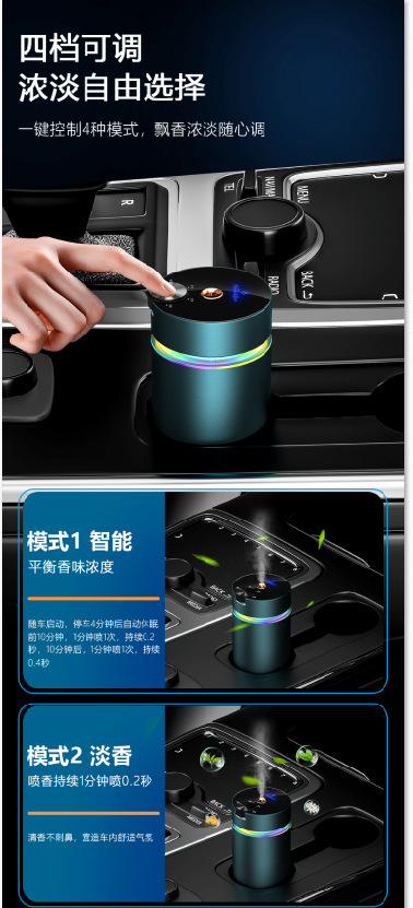 跨境自动喷雾汽车车载香熏 负离子加湿器智能香薰机除异味礼品
