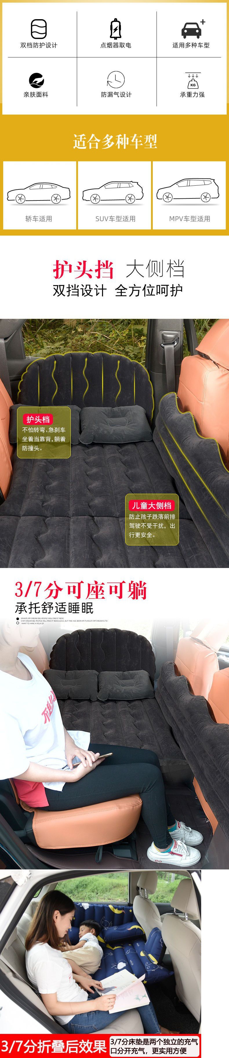 Ranjang Inflatable Mobil Khusus Anak Bayi Dua Kursi Ranjang Perjalanan Belakang Mobil Ranjang Kursi Belakang Mobil Bisa Duduk dan Berbaring