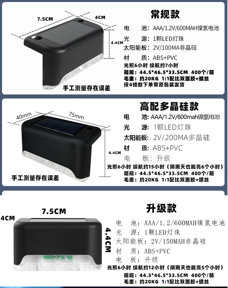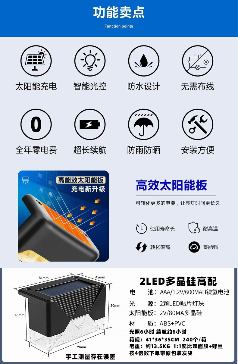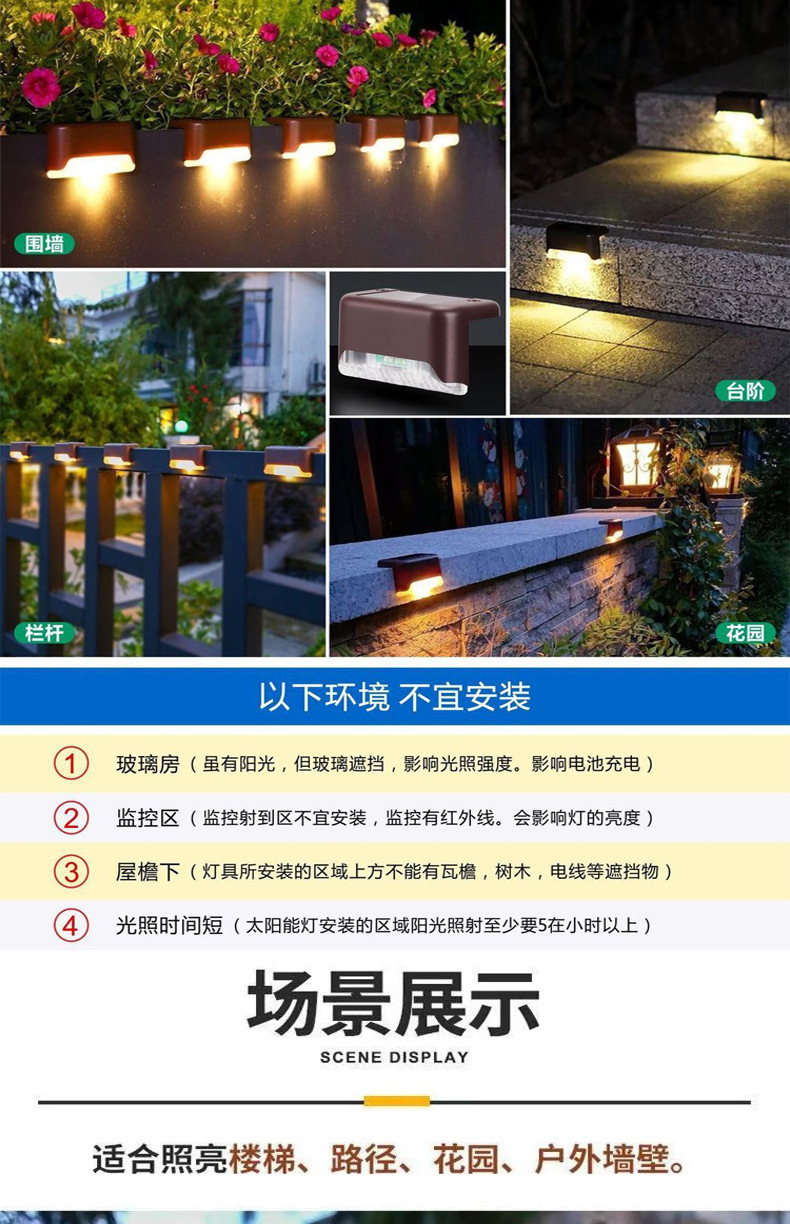太阳能装饰灯庭院氛围灯楼梯灯栏杆灯阶梯台阶灯篱笆灯护栏灯壁灯