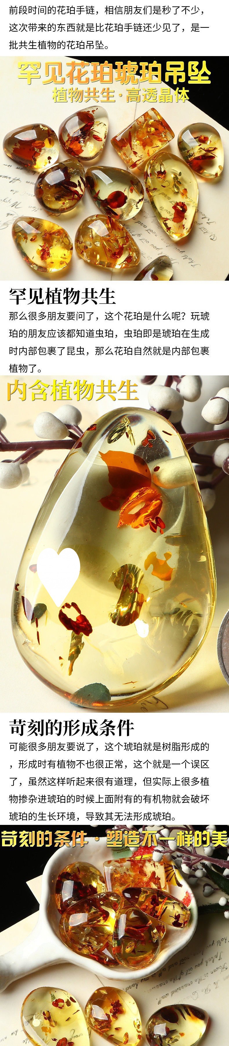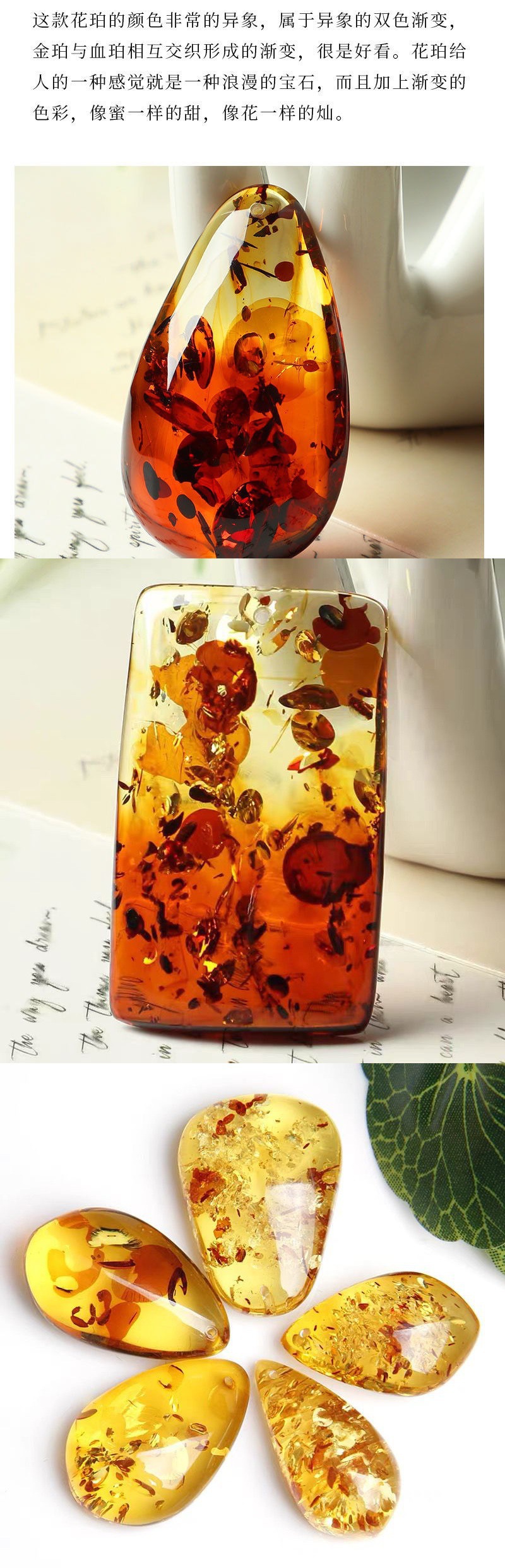 Liontin rantai bunga Amber liontin tetesan air liontin kalung bunga batu asli dua warna stasiun independen