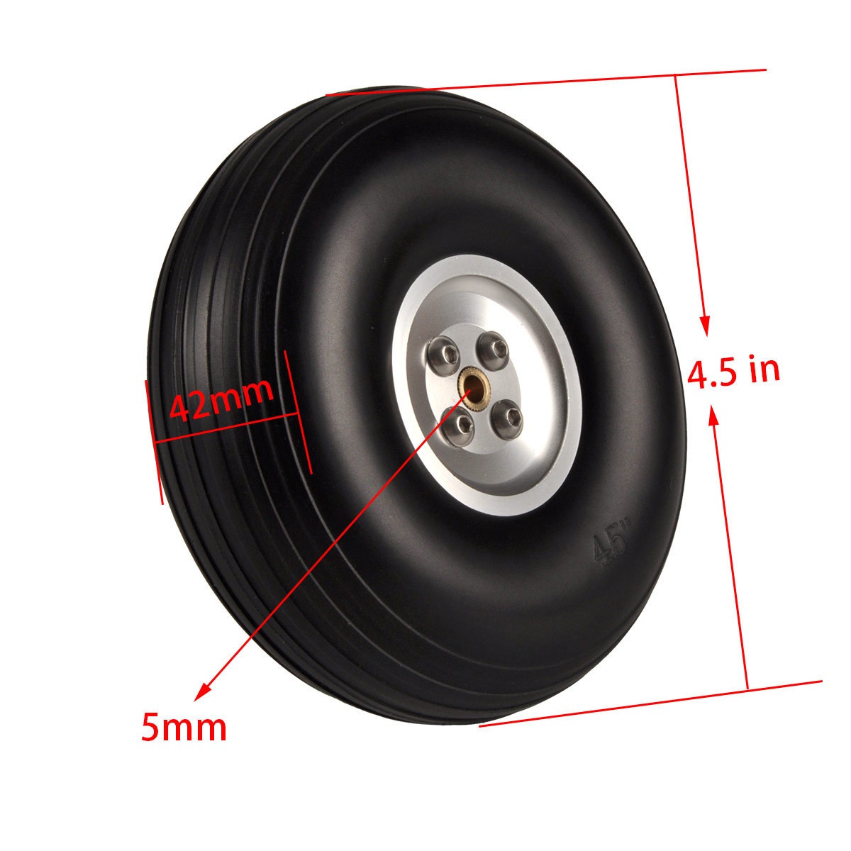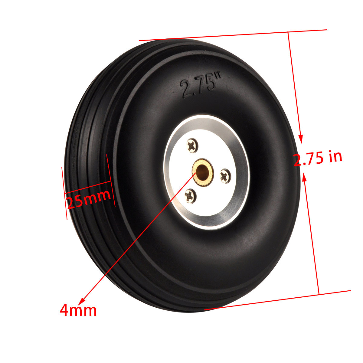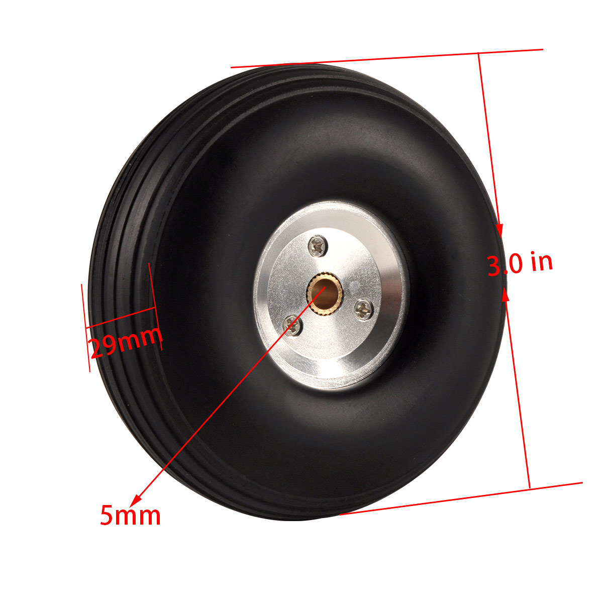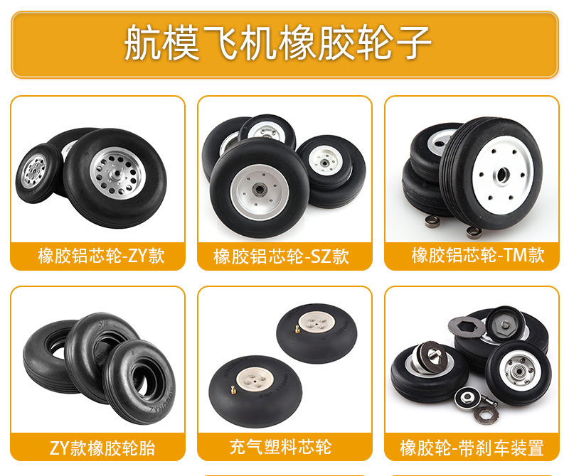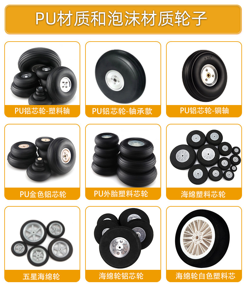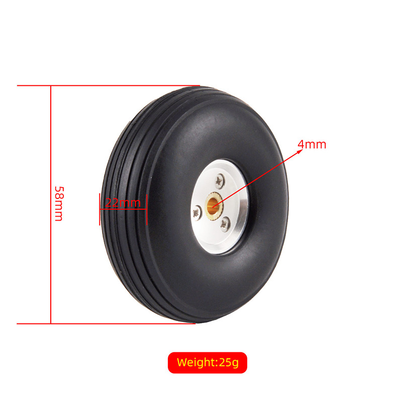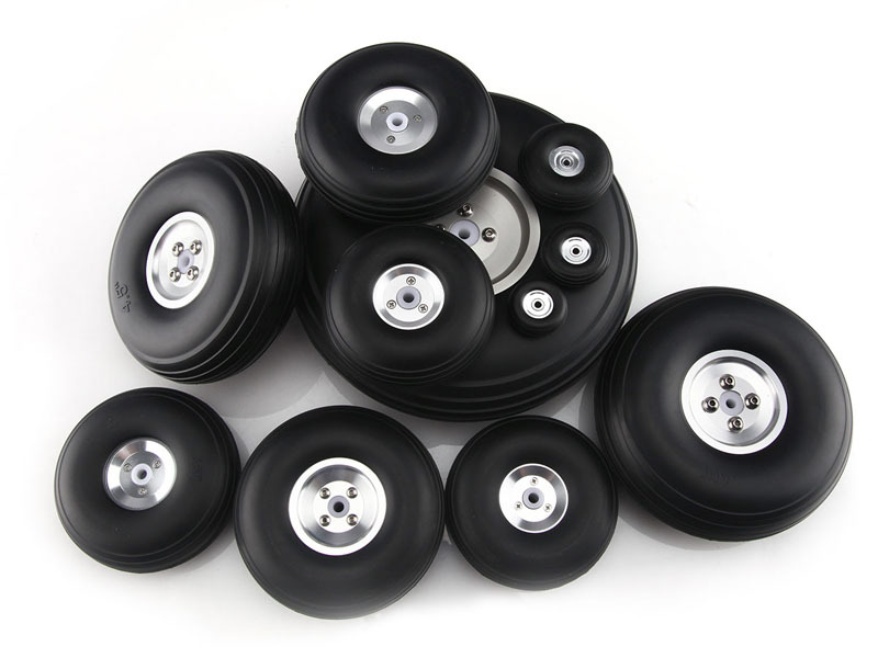 Model pesawat flywheel roda pendaratan tetap, ban solid PU, roda Inti aluminium perak, roda 2.75 hingga 5 inci