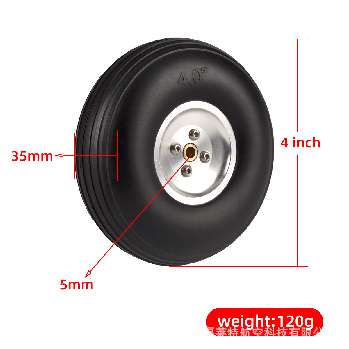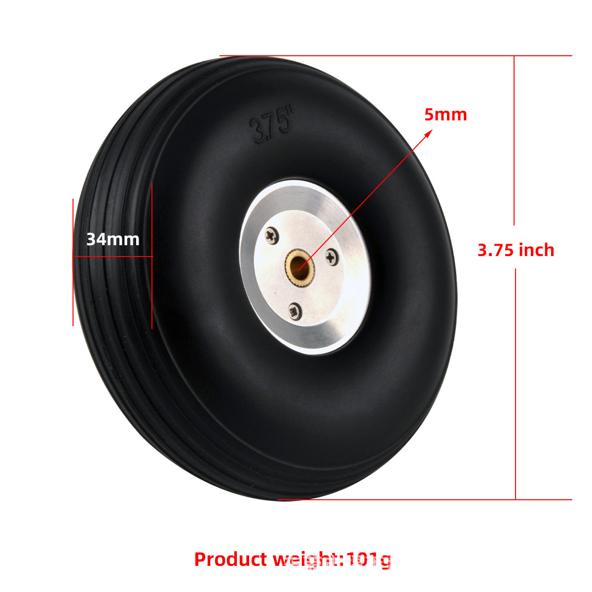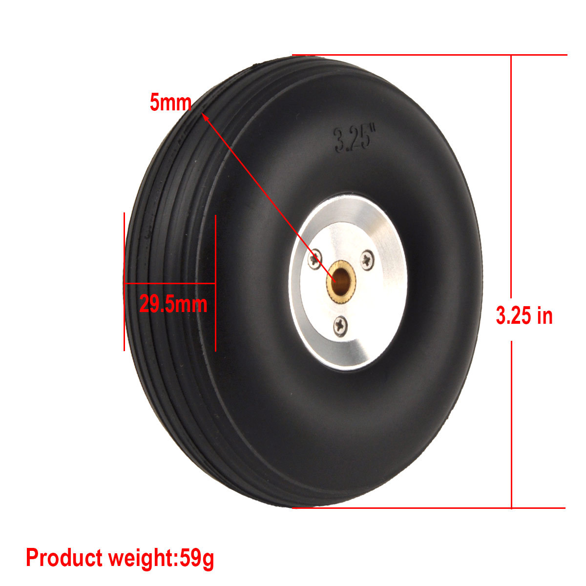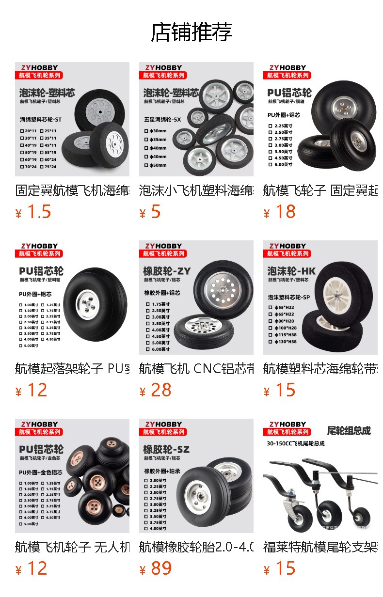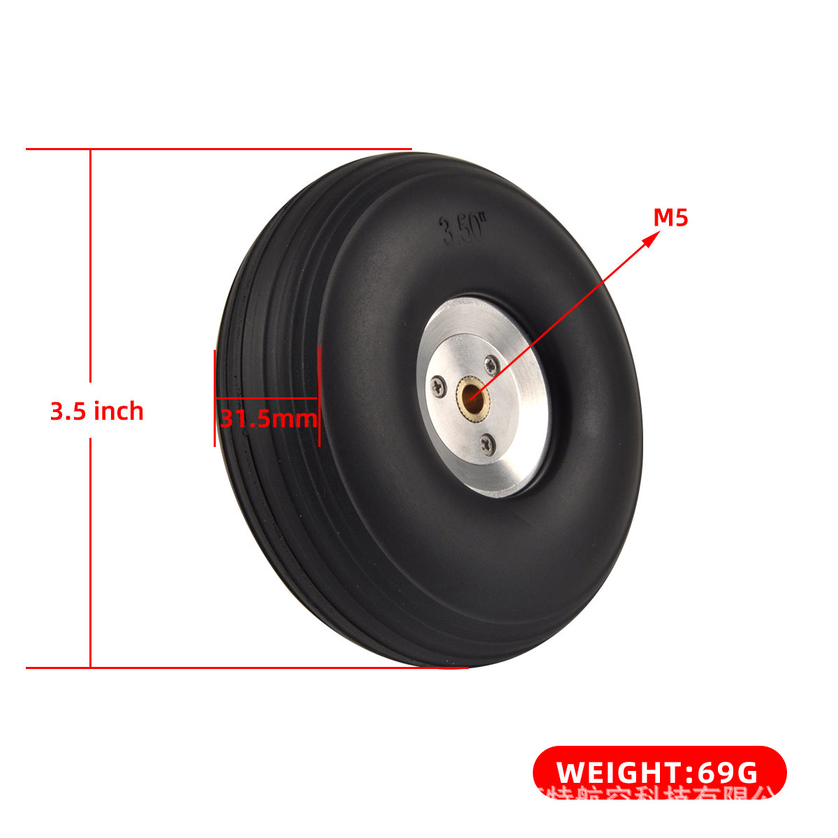 Model pesawat flywheel roda pendaratan tetap, ban solid PU, roda Inti aluminium perak, roda 2.75 hingga 5 inci
