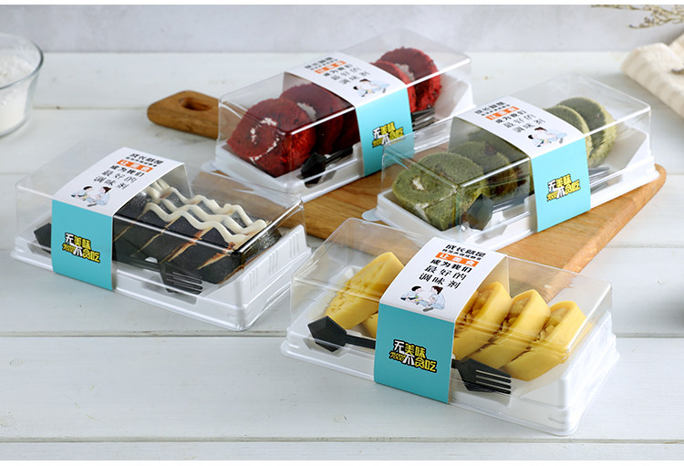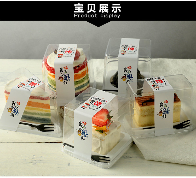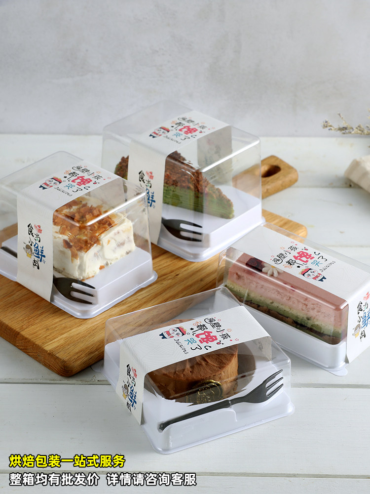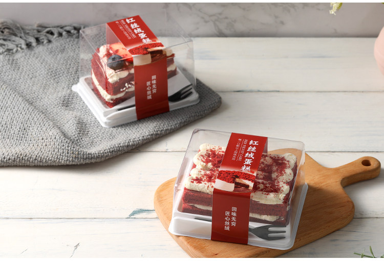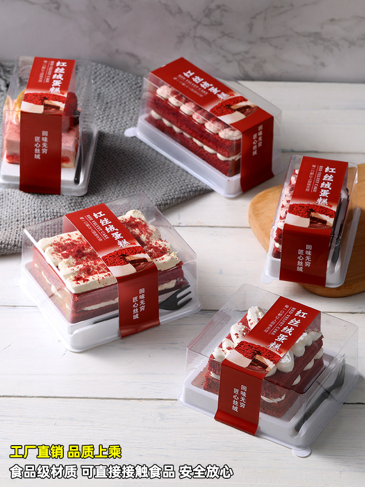Mousse kotak kemasan beludru merah kue potongan multi-lapisan kotak kemasan massal segitiga transparan sekali pakai kotak kemasan titik Barat