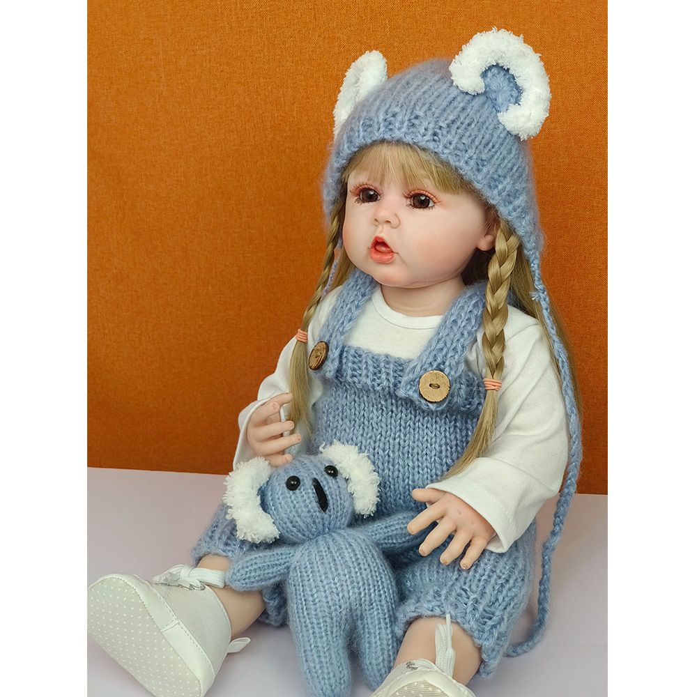 Boneka bayi lucu, mainan anak perempuan berdiri dan duduk vinil lembut 55cm simulasi dapat dicuci