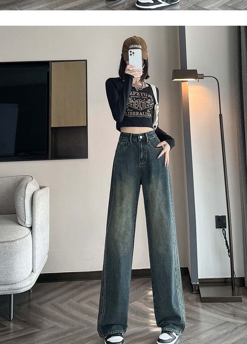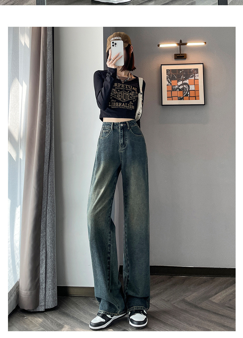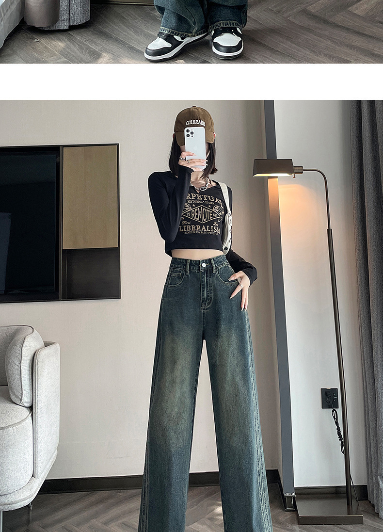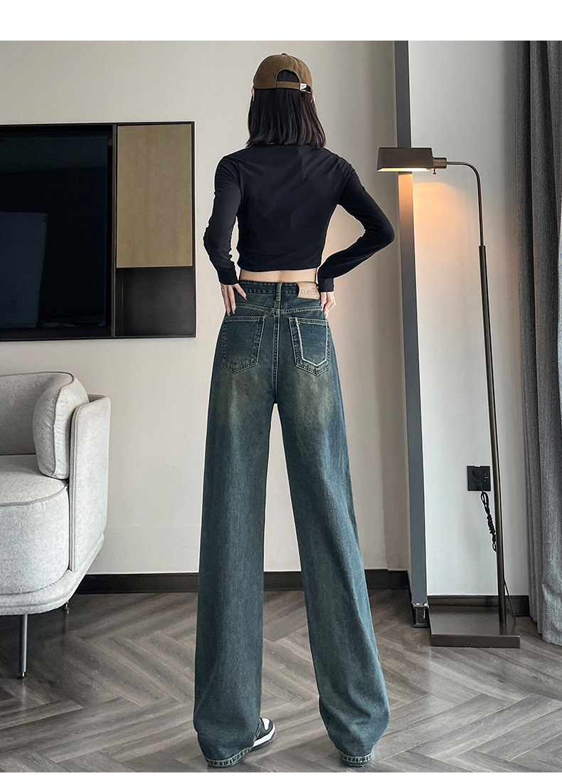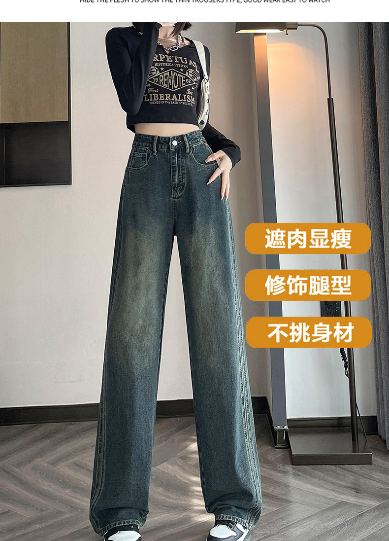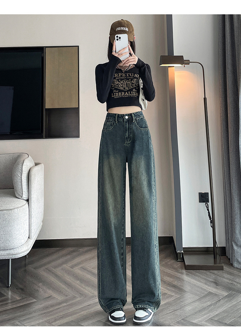 水泥灰窄版直筒牛仔裤女春装2024年高腰宽松显瘦小个子垂感阔腿裤
