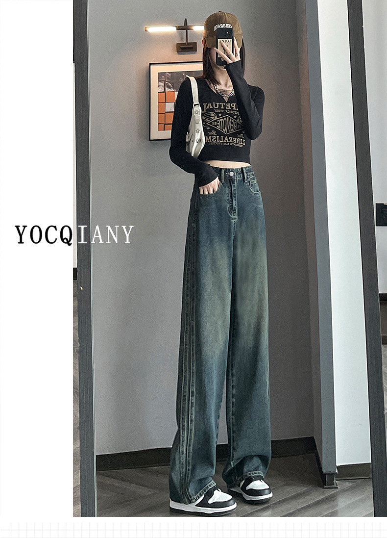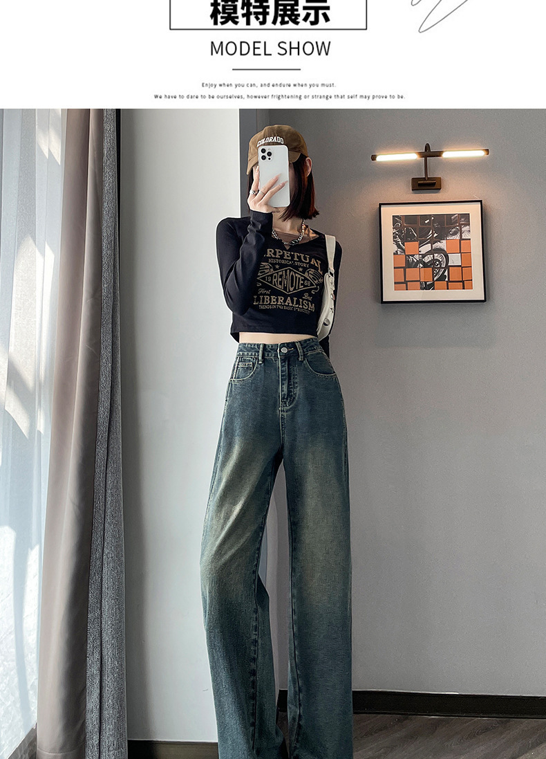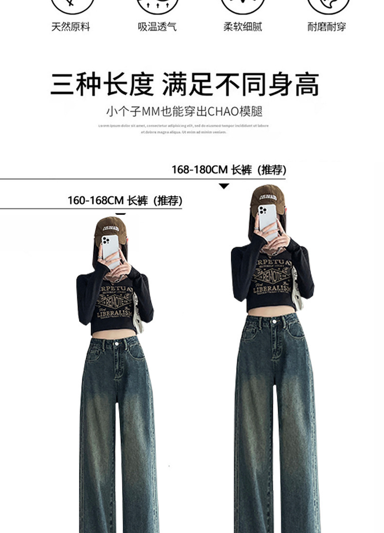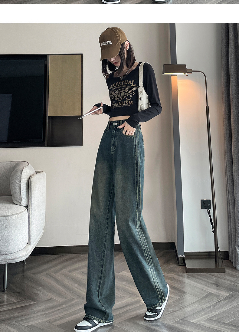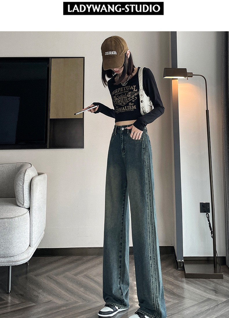 水泥灰窄版直筒牛仔裤女春装2024年高腰宽松显瘦小个子垂感阔腿裤